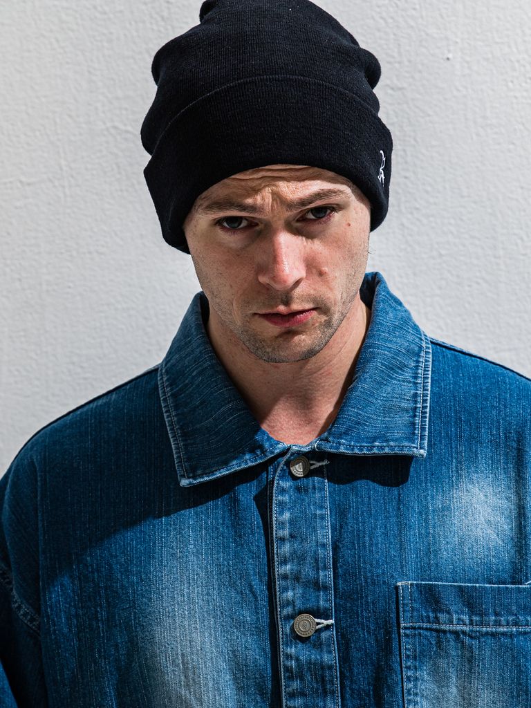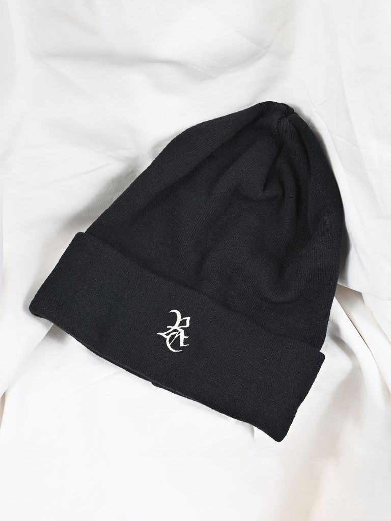 【予約品 11月16日(日) 締切】LINEN KNIT CAP / リネン RCロゴ刺繍 ニットキャップ / ブラック