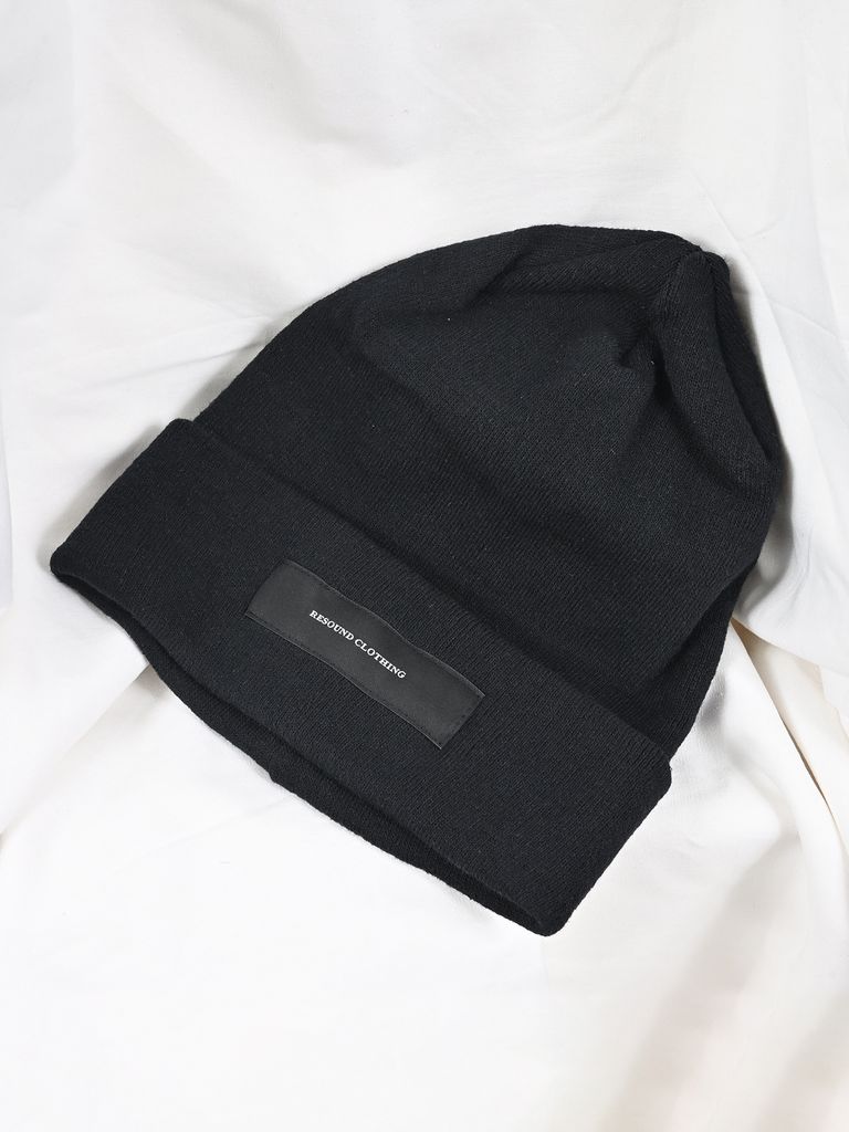 【予約品 11月16日(日) 締切】LINEN KNIT CAP / リネン ロゴタグ付き ニットキャップ / ブラック