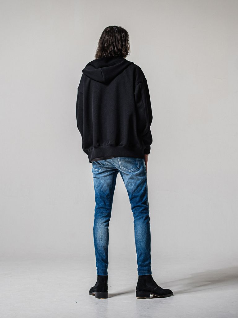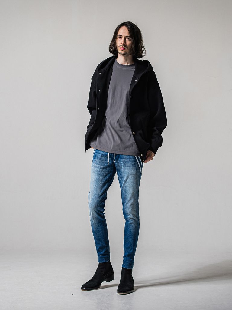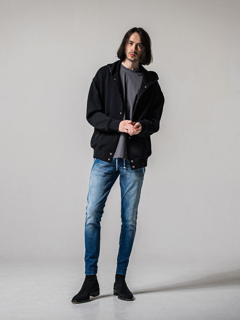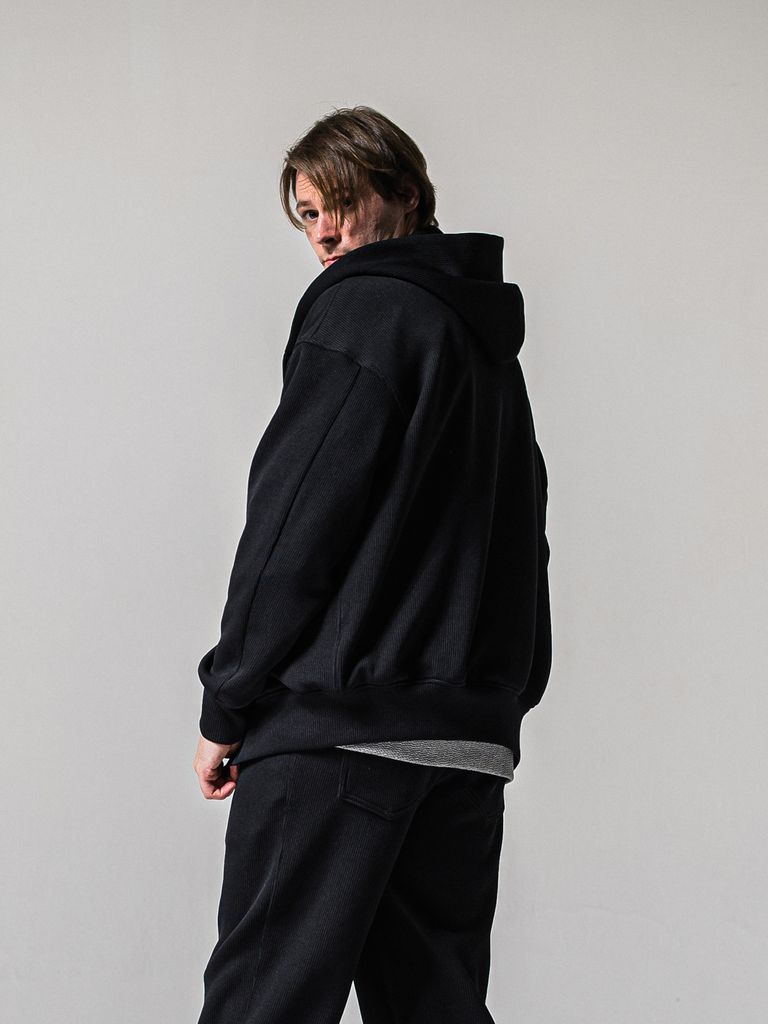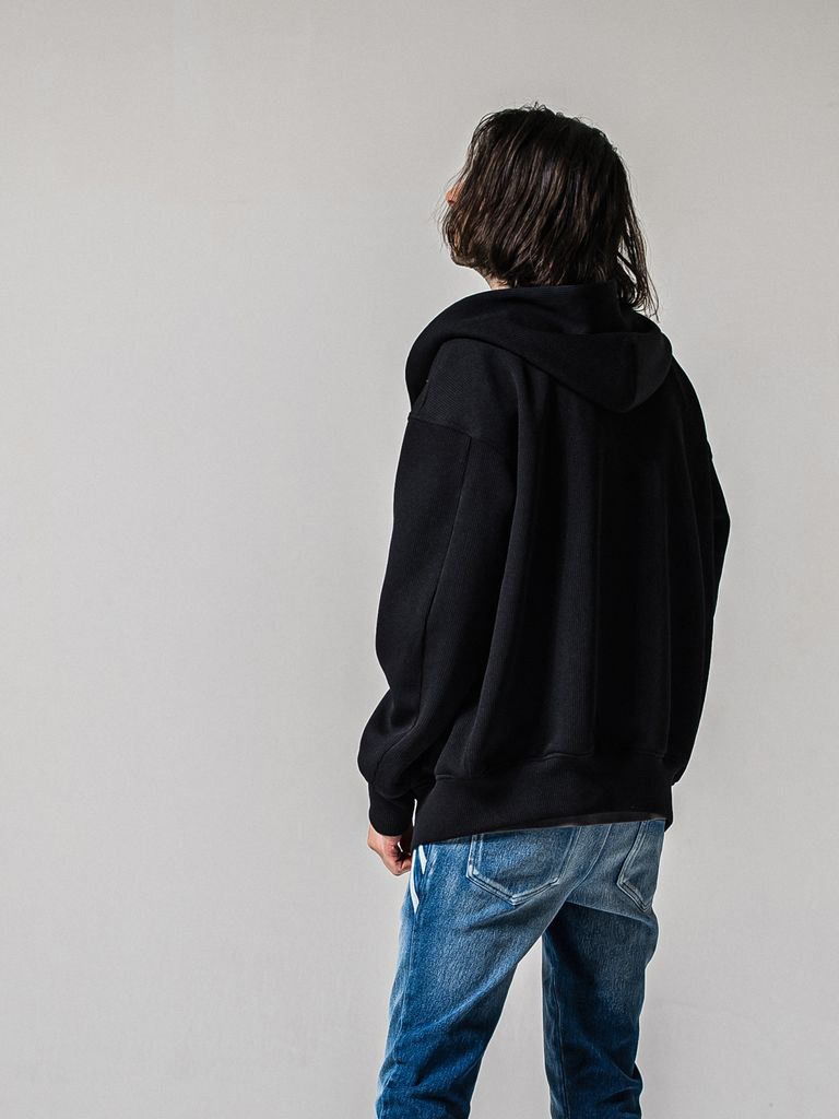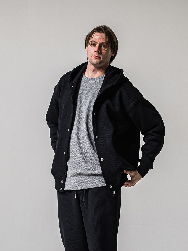 【予約品 11月16日(日) 締切】AZE VARSITY HOODIE / 畔編みニット フード付きスタジャン / ブラック