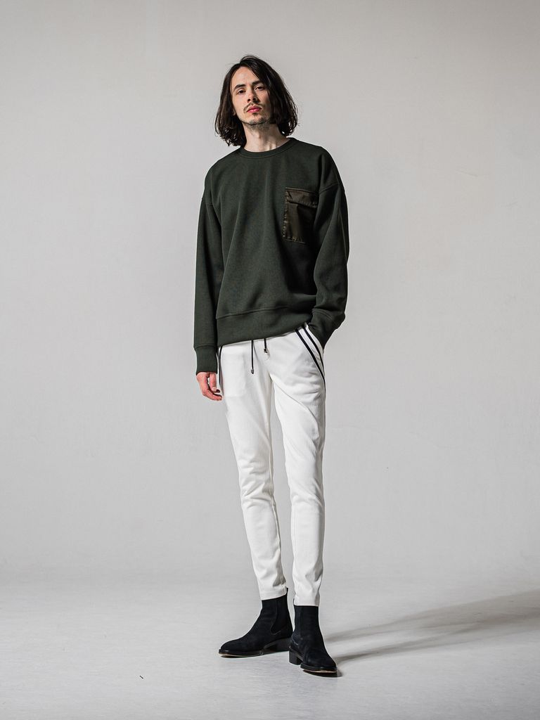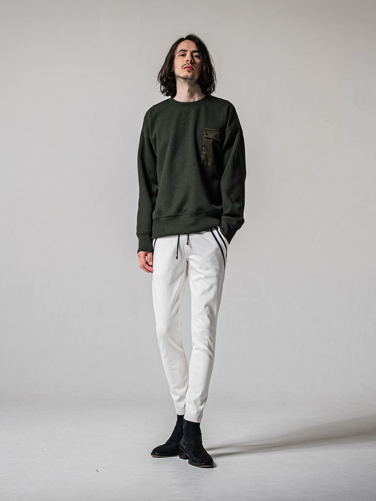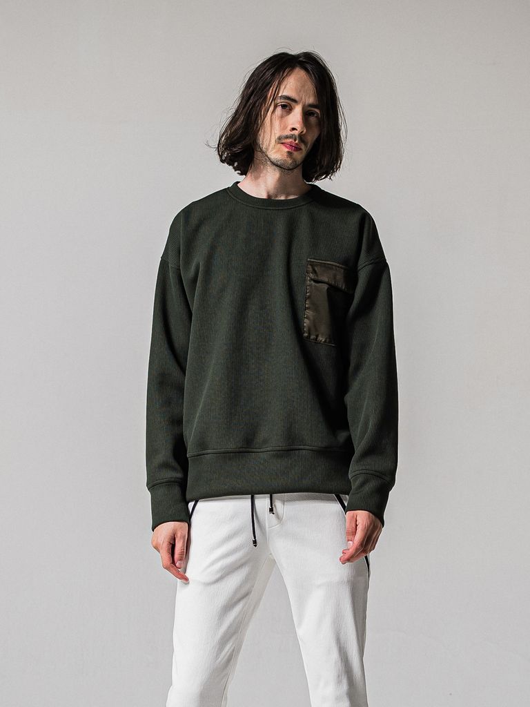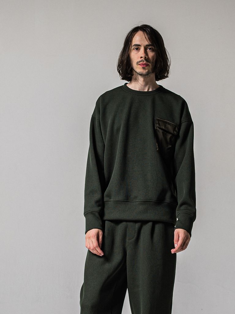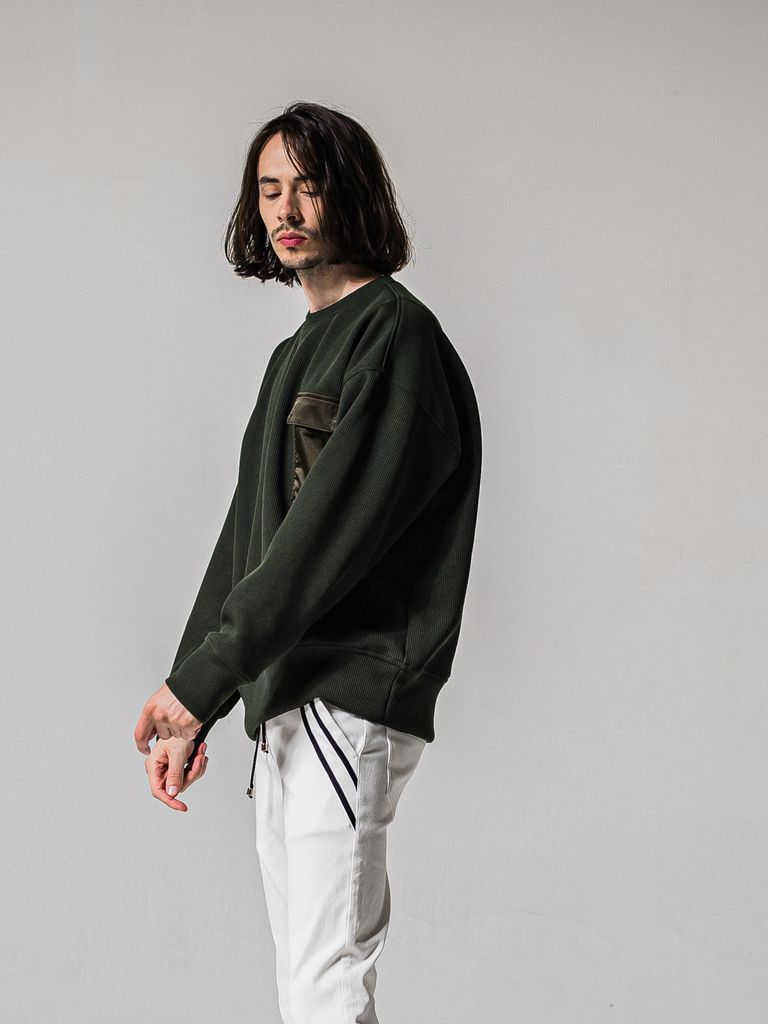 【予約品 11月16日(日) 締切】AZE MILITARY DROP TRAINER / 畔編みニット トレーナー / カーキ