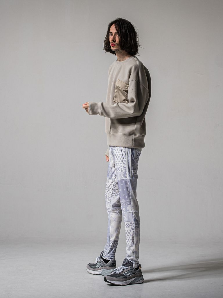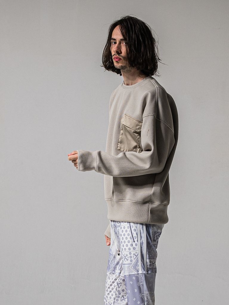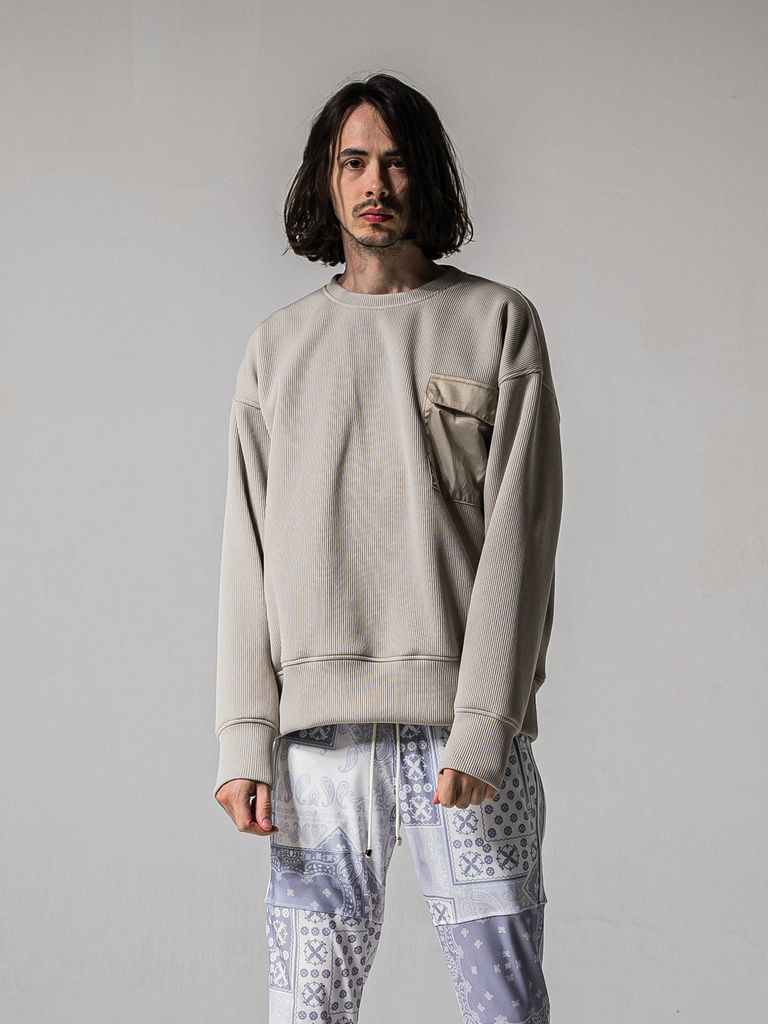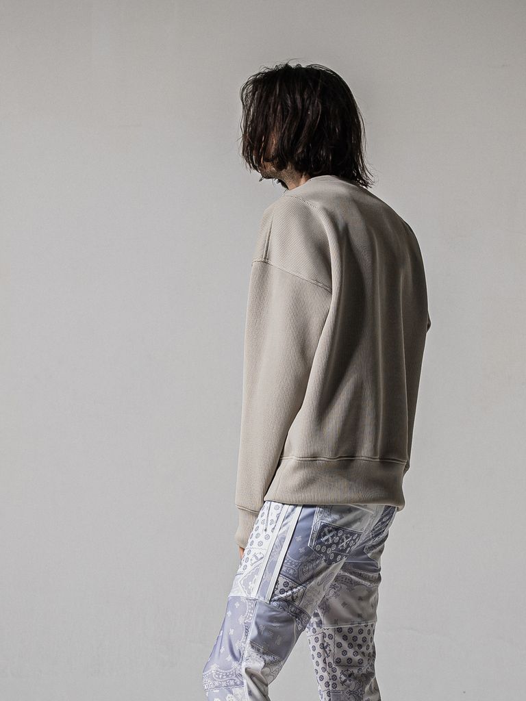 【予約品 11月16日(日) 締切】AZE MILITARY DROP TRAINER / 畔編みニット トレーナー / グレージュ