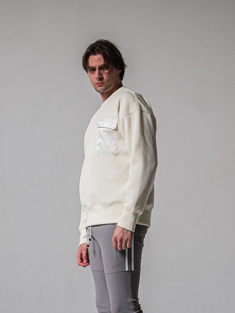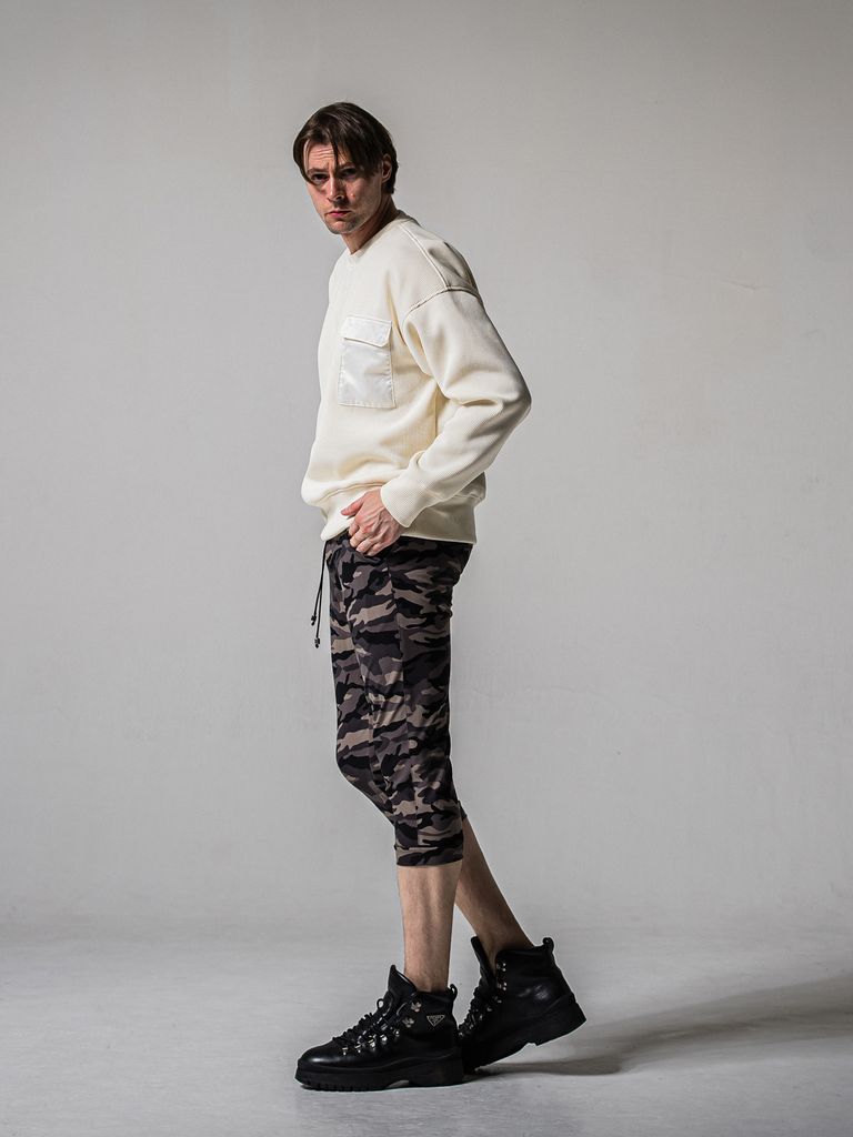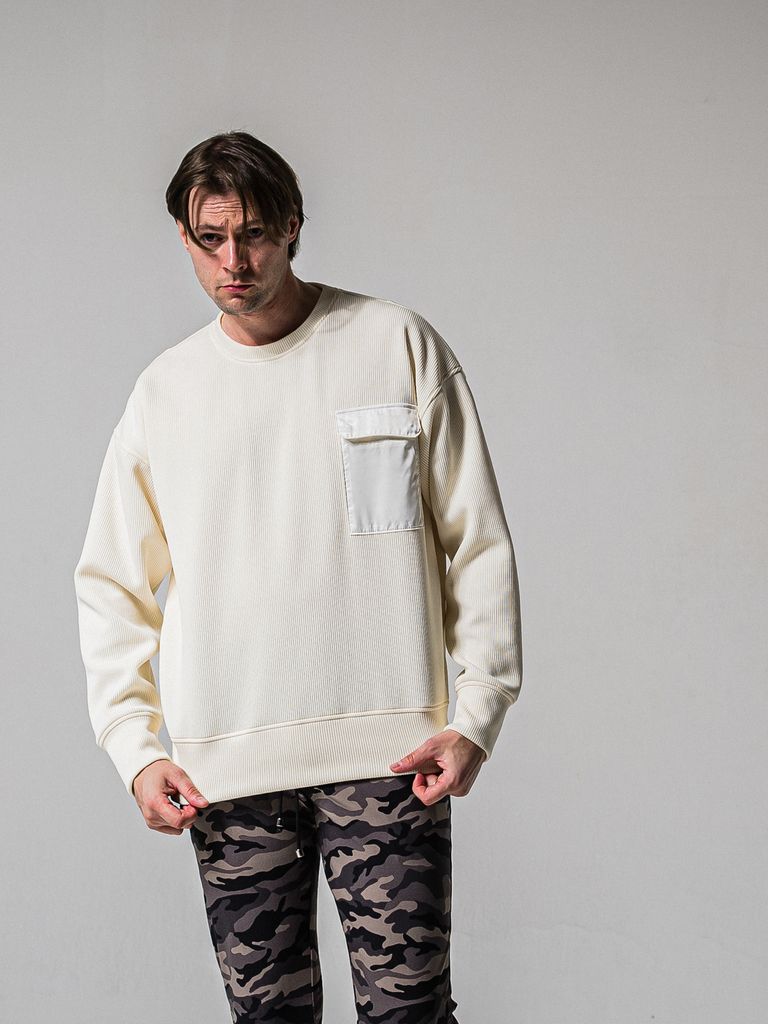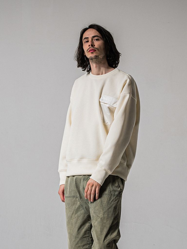 【予約品 11月16日(日) 締切】AZE MILITARY DROP TRAINER / 畔編みニット トレーナー / オフ