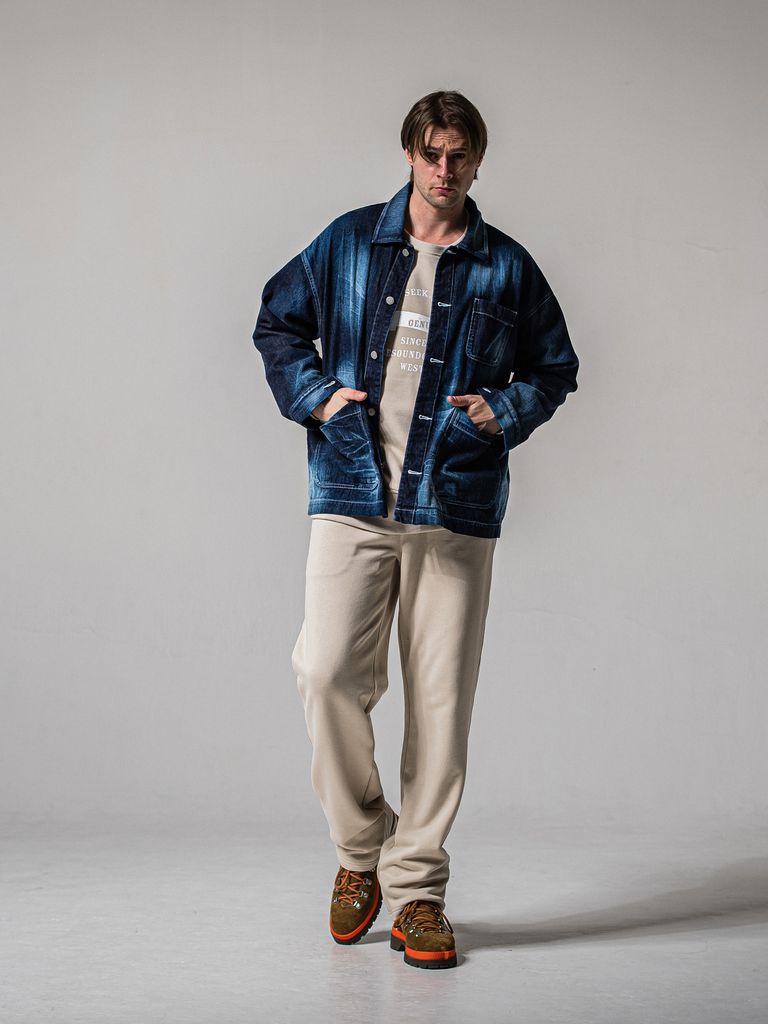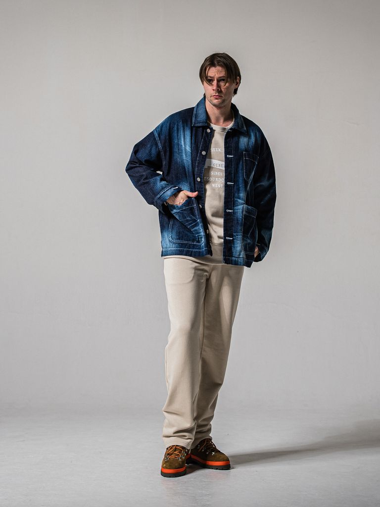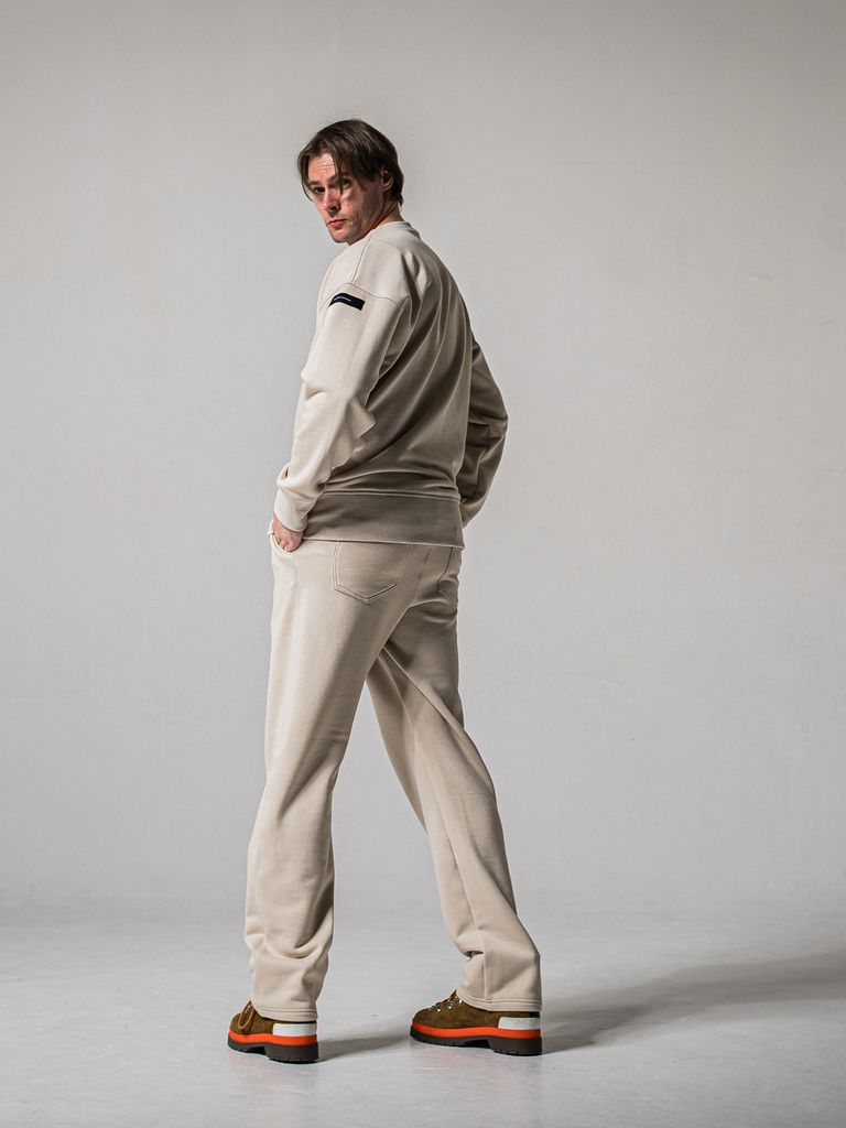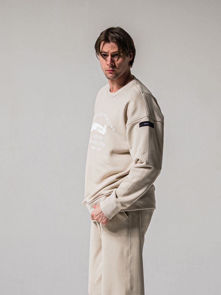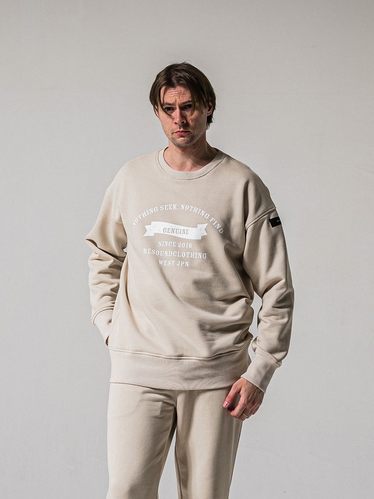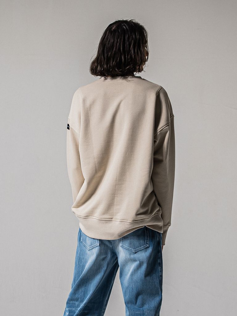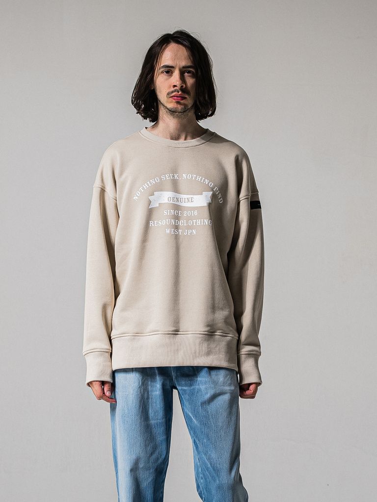 【予約品 11月16日(日) 締切】HF URAKE COLLEGE DROP TRAINER / 裏毛 カレッジロゴルーズ トレーナー / グレージュ