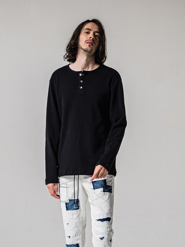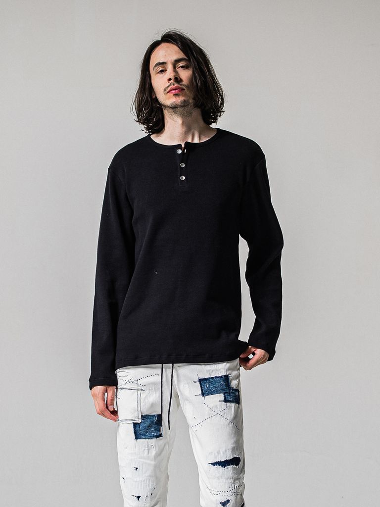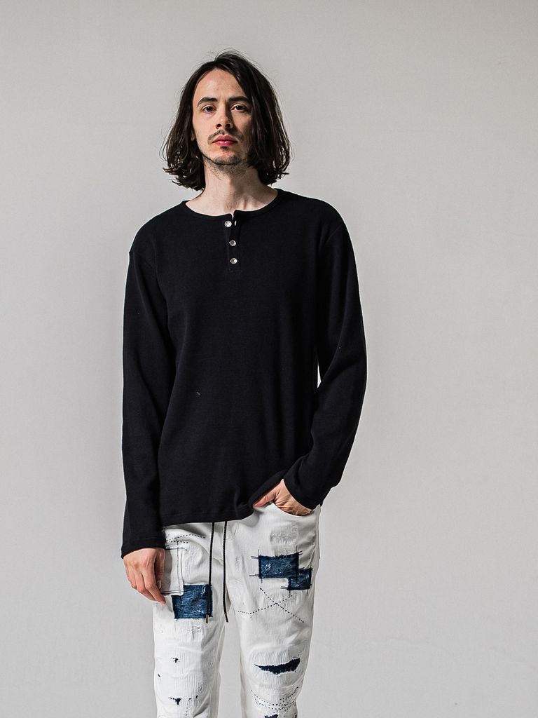 【予約品 11月16日(日) 締切】WAFFLE HENRY / ワッフルサーマル ヘンリーネック / ブラック