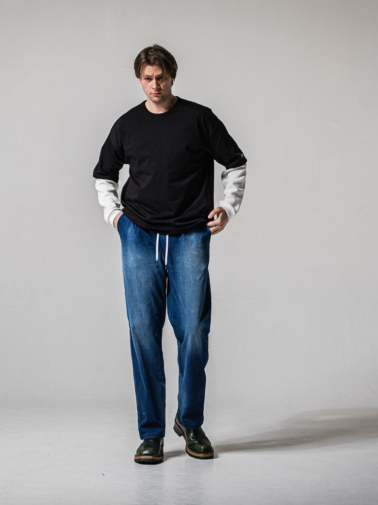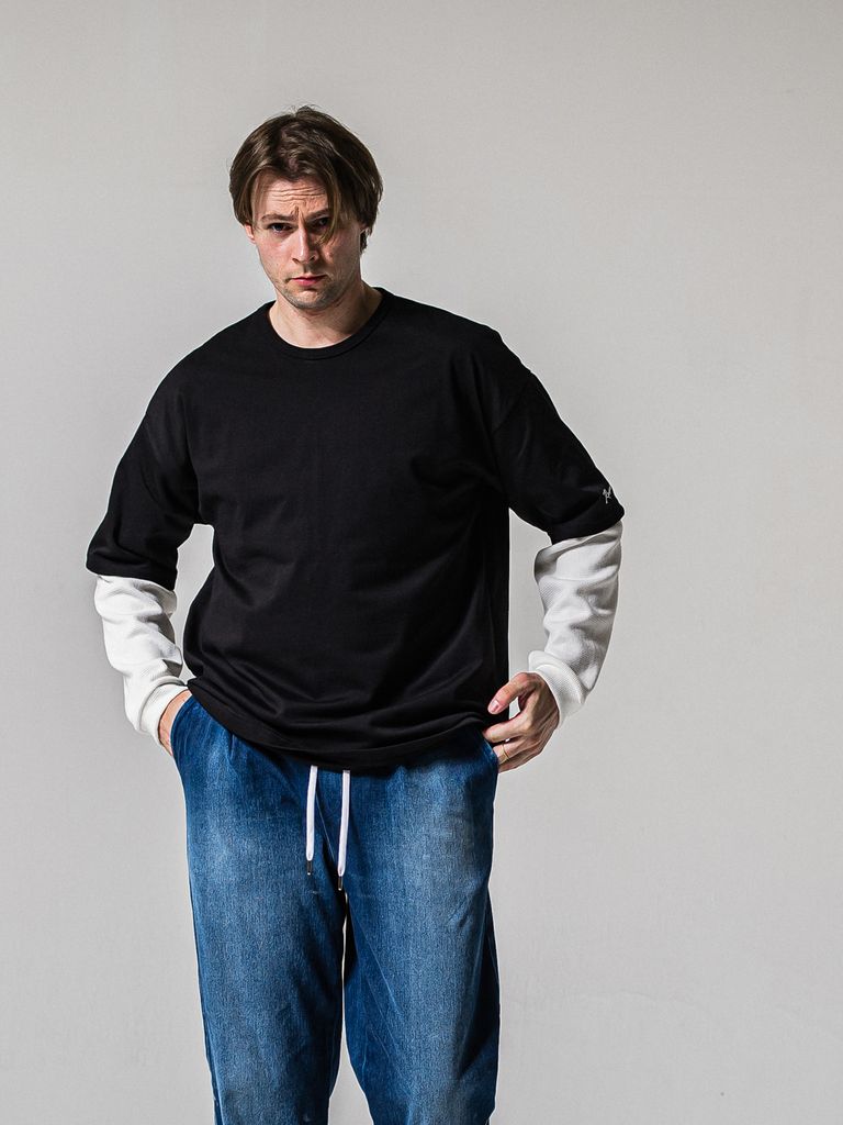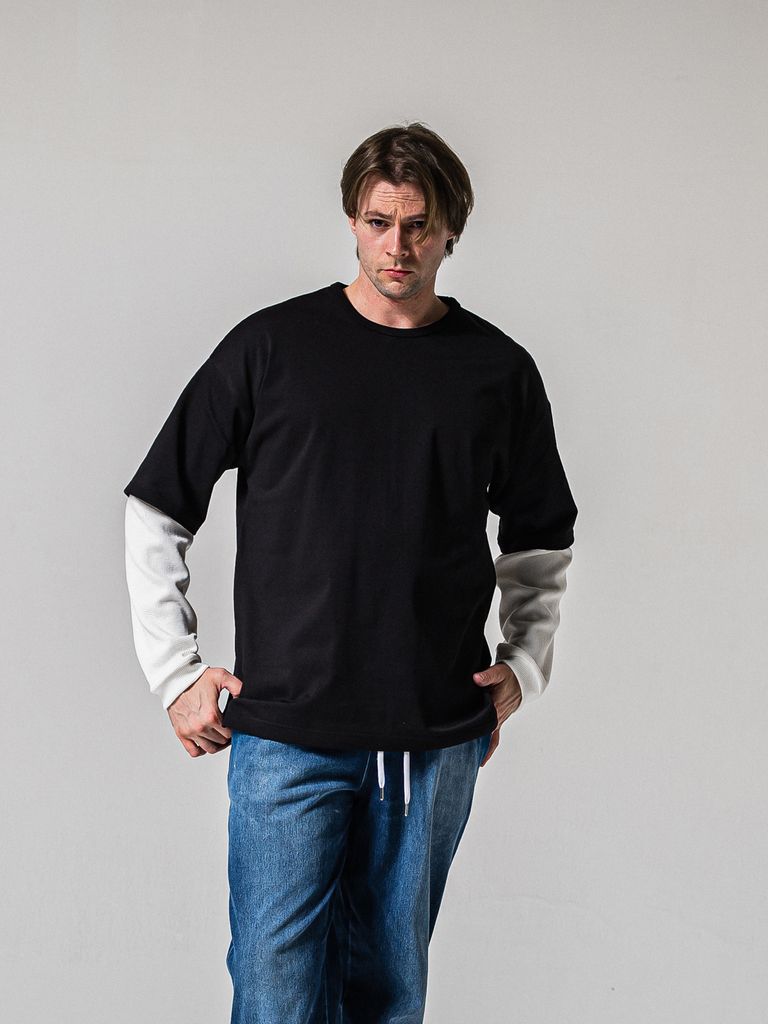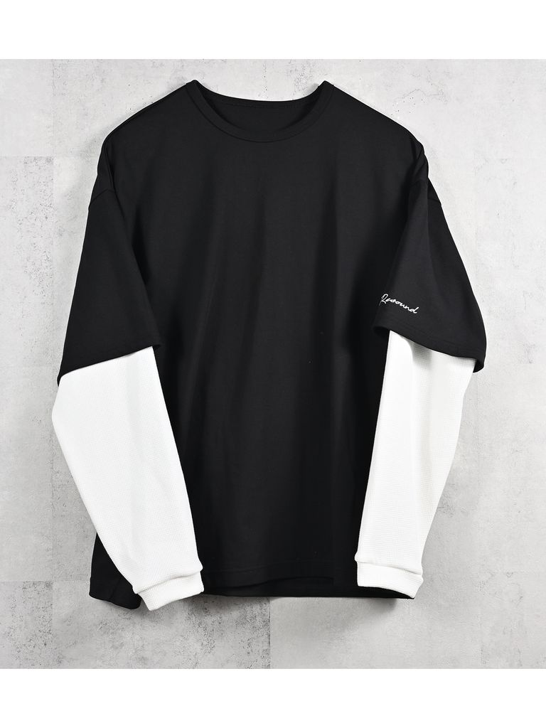 【予約品 11月16日(日) 締切】FAKE LAYERED WAFFLE LONGSLEEVE / フェイクレイヤード ワッフル ロングスリーブTシャツ / ブラック×ホワイト