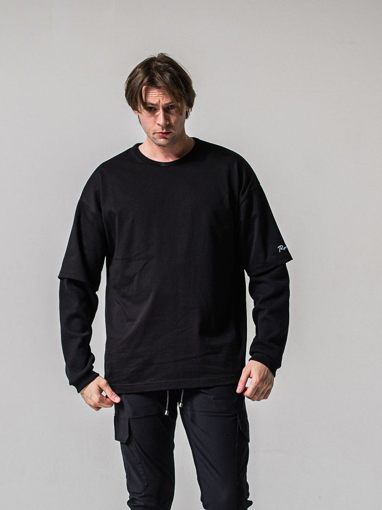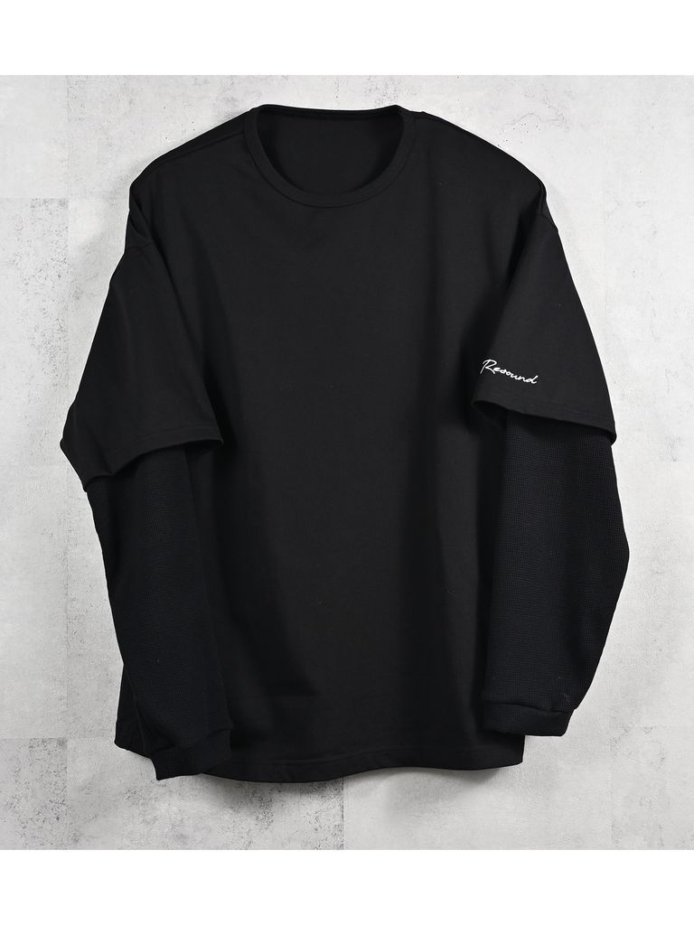 【予約品 11月16日(日) 締切】FAKE LAYERED WAFFLE LONGSLEEVE / フェイクレイヤード ワッフル ロングスリーブTシャツ / ブラック