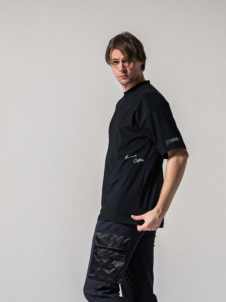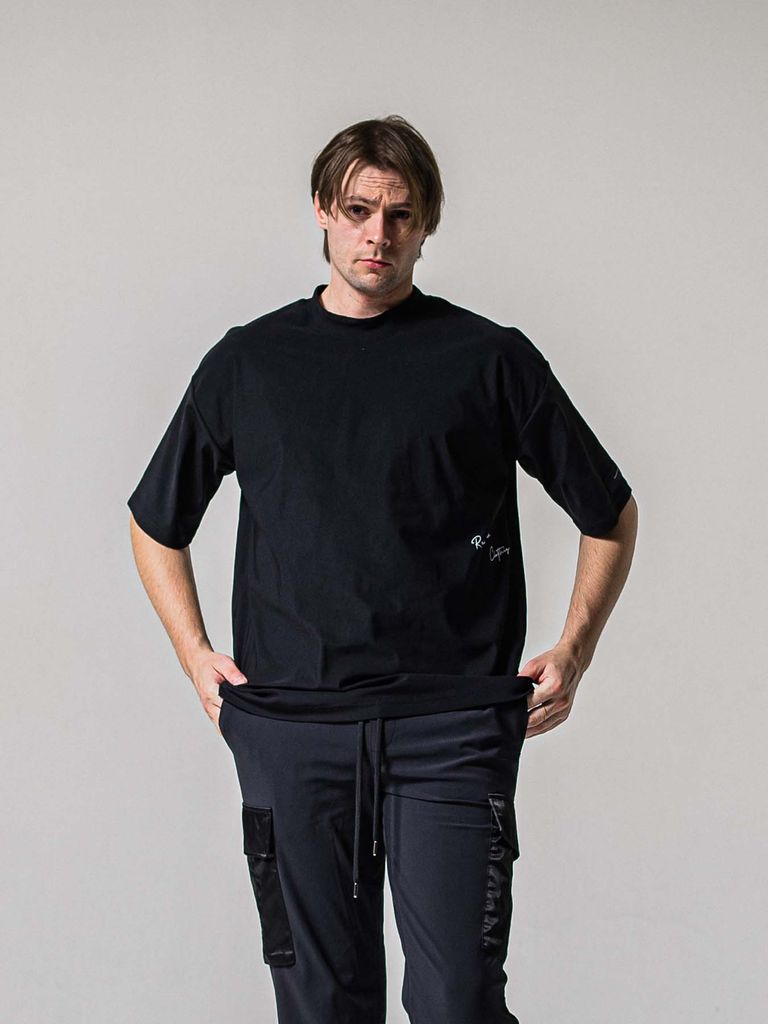 【予約品 11月16日(日) 締切】SIDE RC OVER T / サイドロゴプリント オーバーサイズ ナイロンTシャツ / ブラック