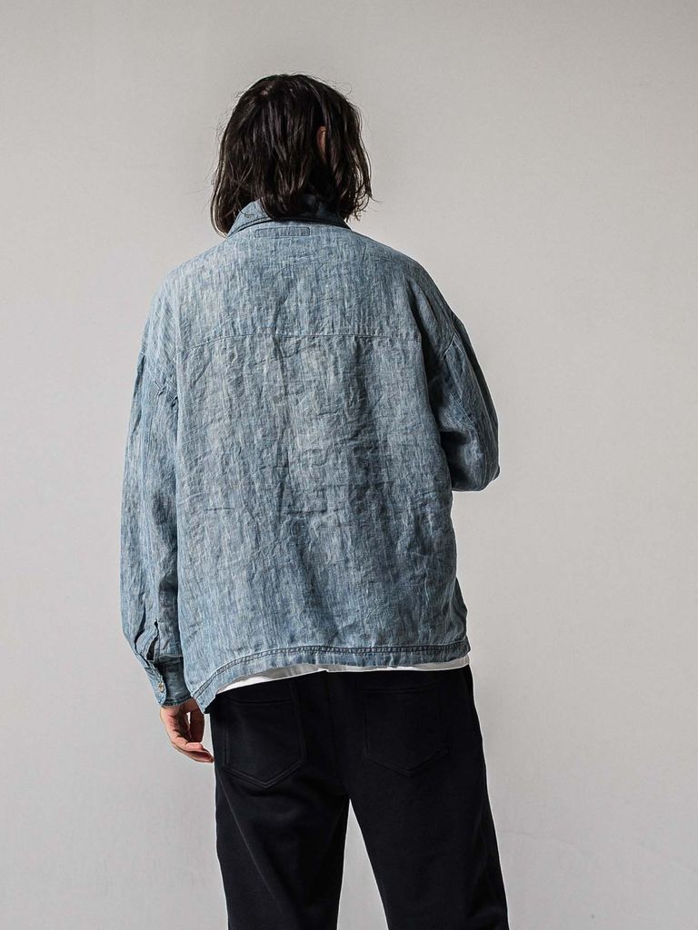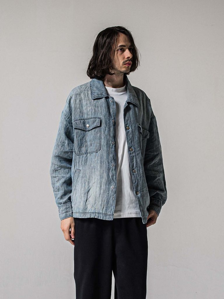 【予約品 11月16日(日) 締切】INDIGO LINE JACK SHIRTS / インディゴ リネン CPOジャケット / ライトインディゴ