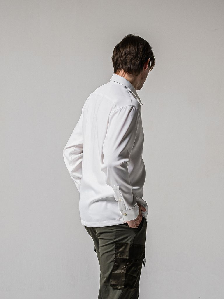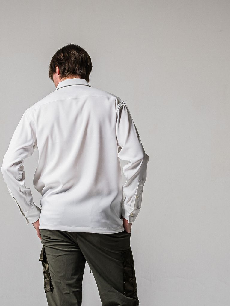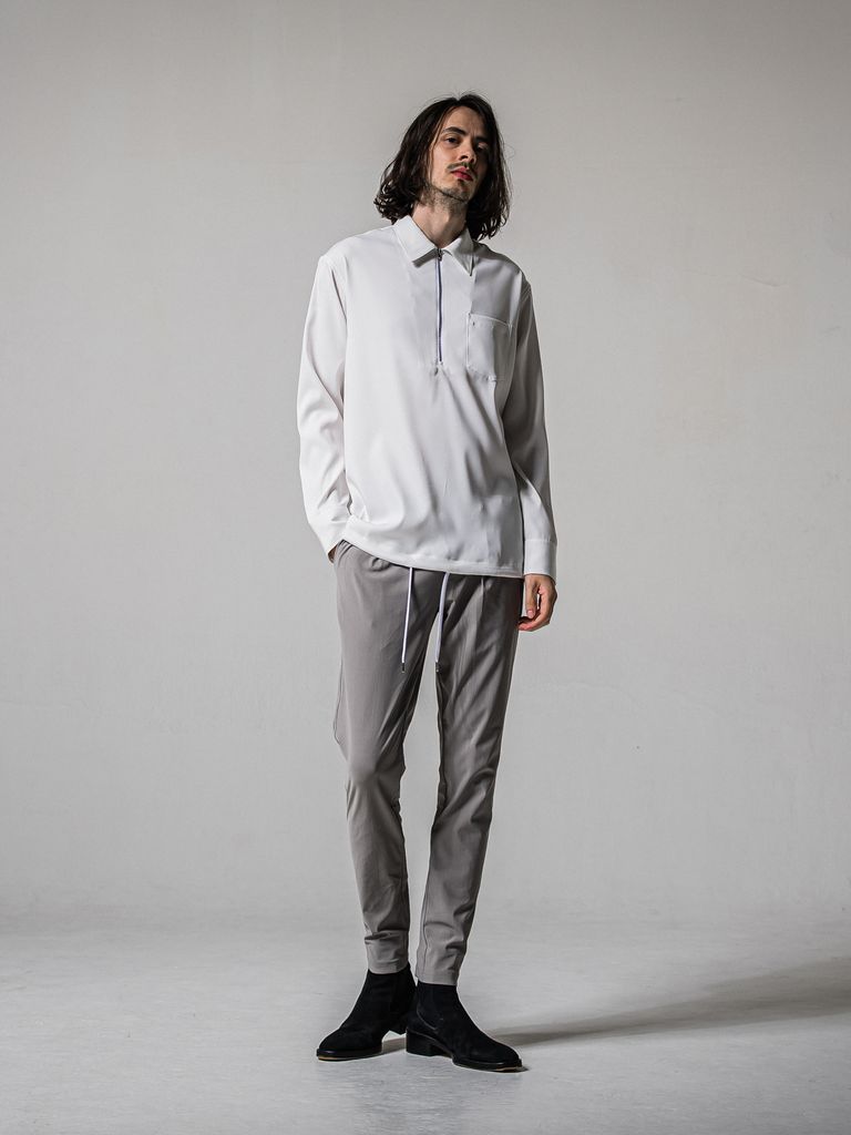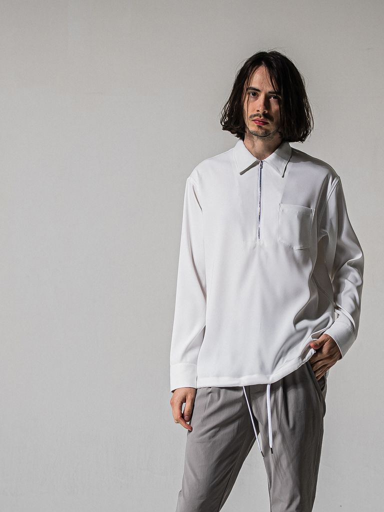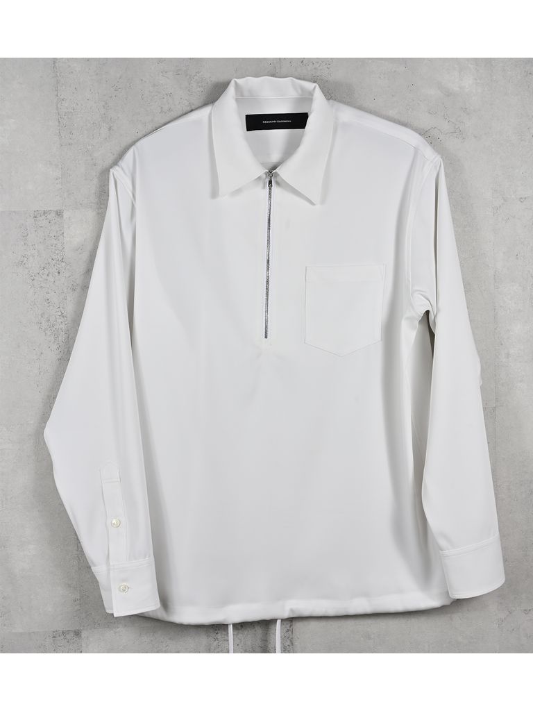【予約品 11月16日(日) 締切】PULL OVER SATIN SHIRT / ジッププルオーバー サテンシャツ / ホワイト