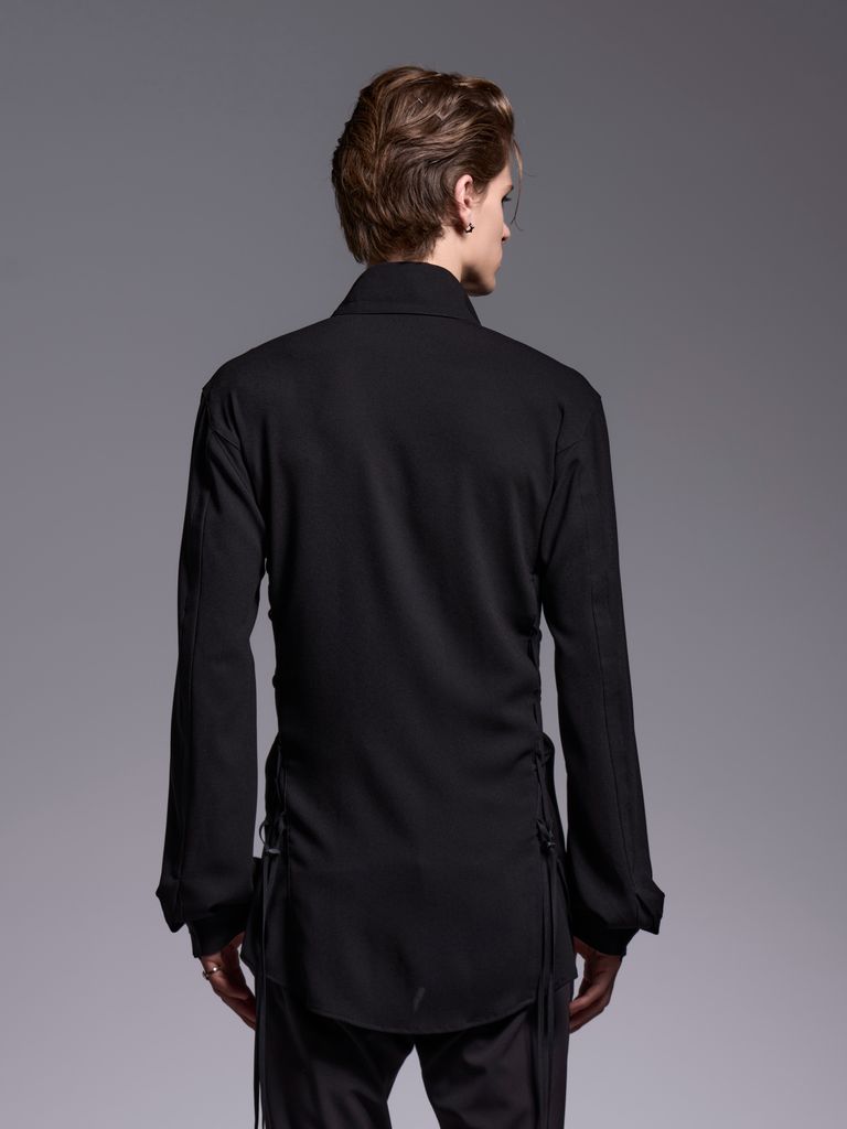 【予約品 1月4日(日) 締切】Lace Up Single Frill Shirts / レースアップ シングル フリルシャツ / ブラック