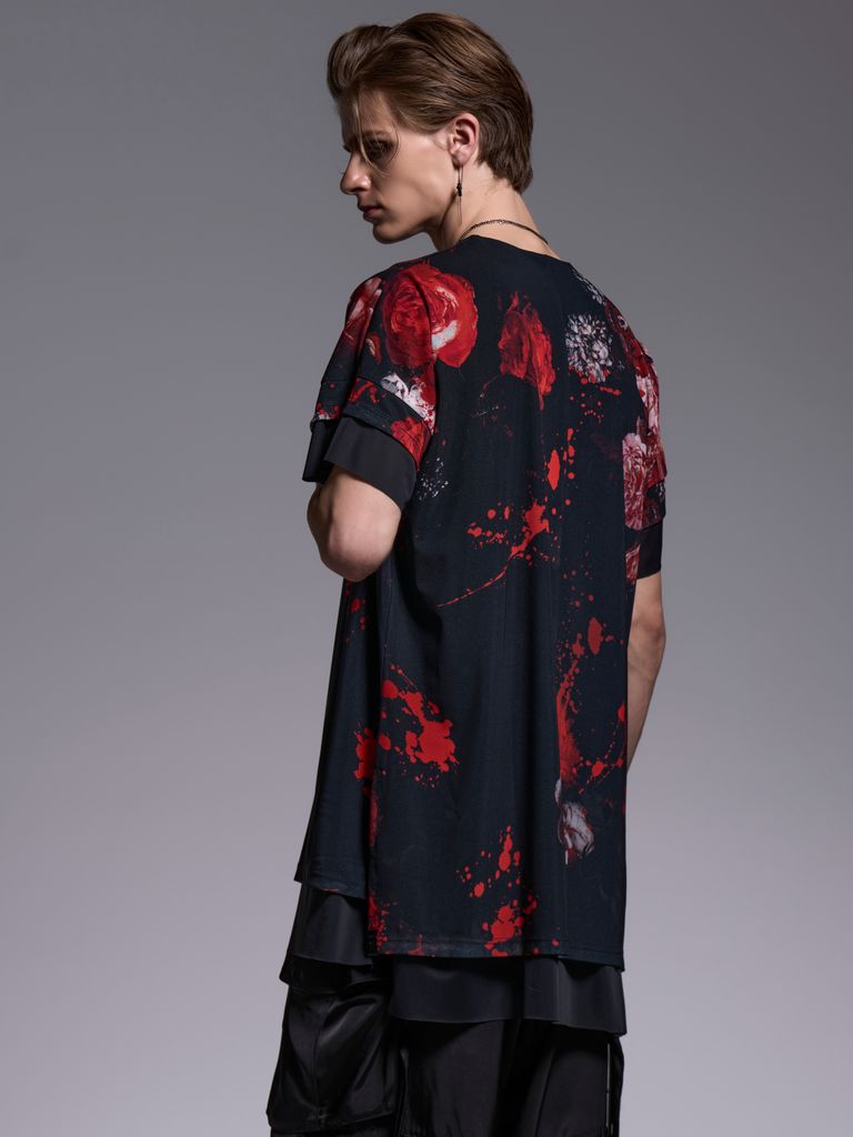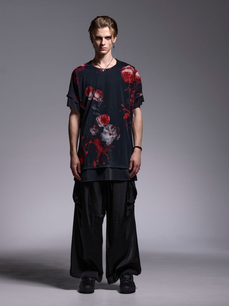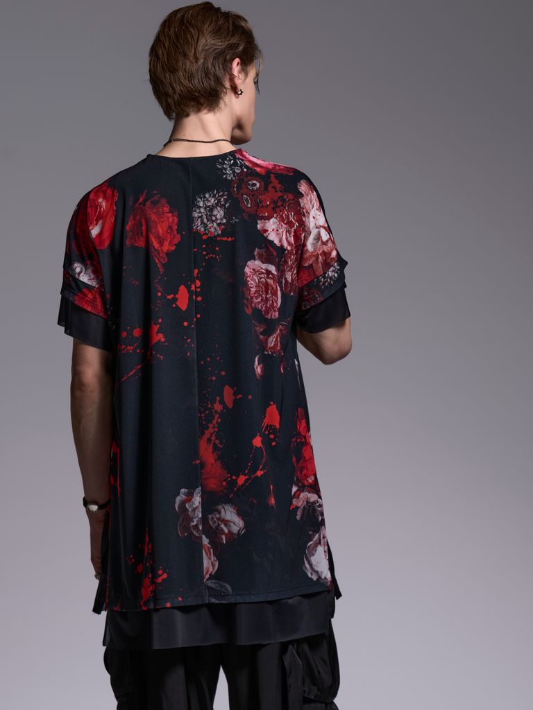 【予約品 1月4日(日) 締切】Crew Neck Layered-T / クルーネック レイヤードTシャツ / ブラックフローラ