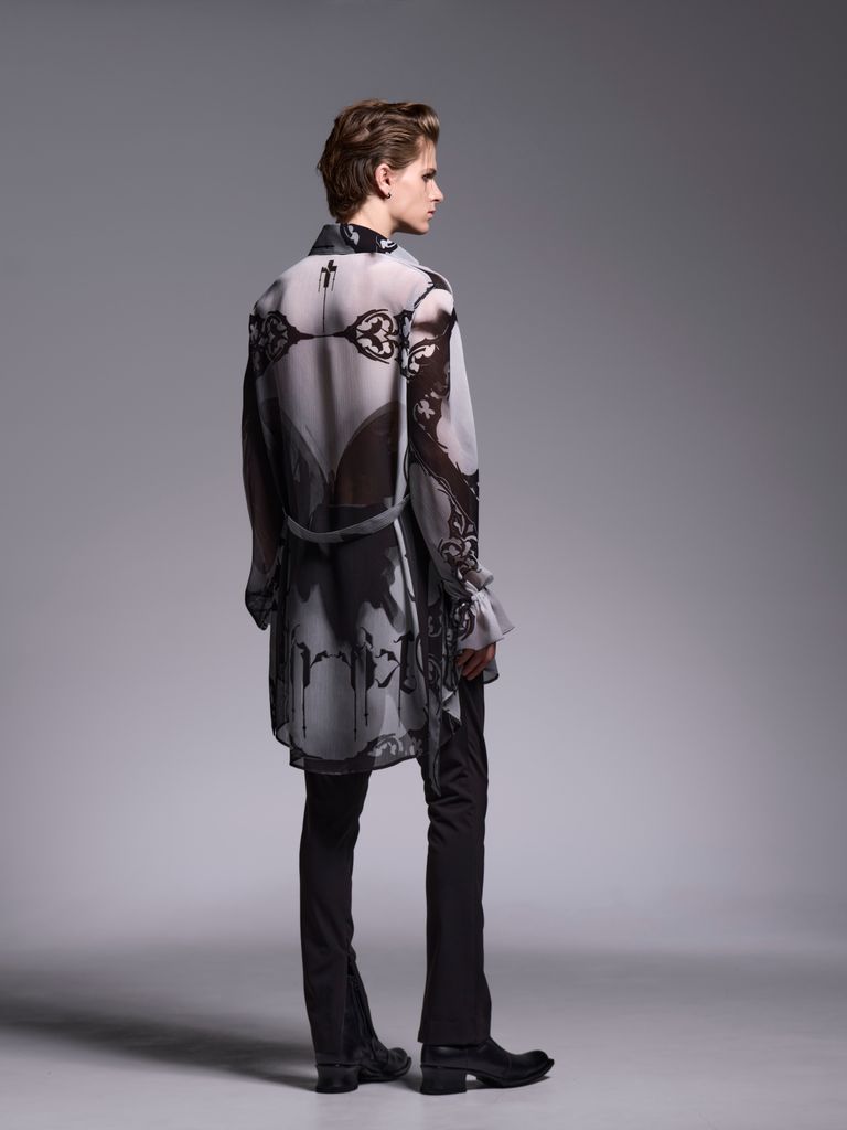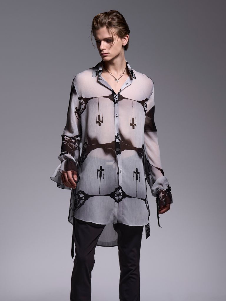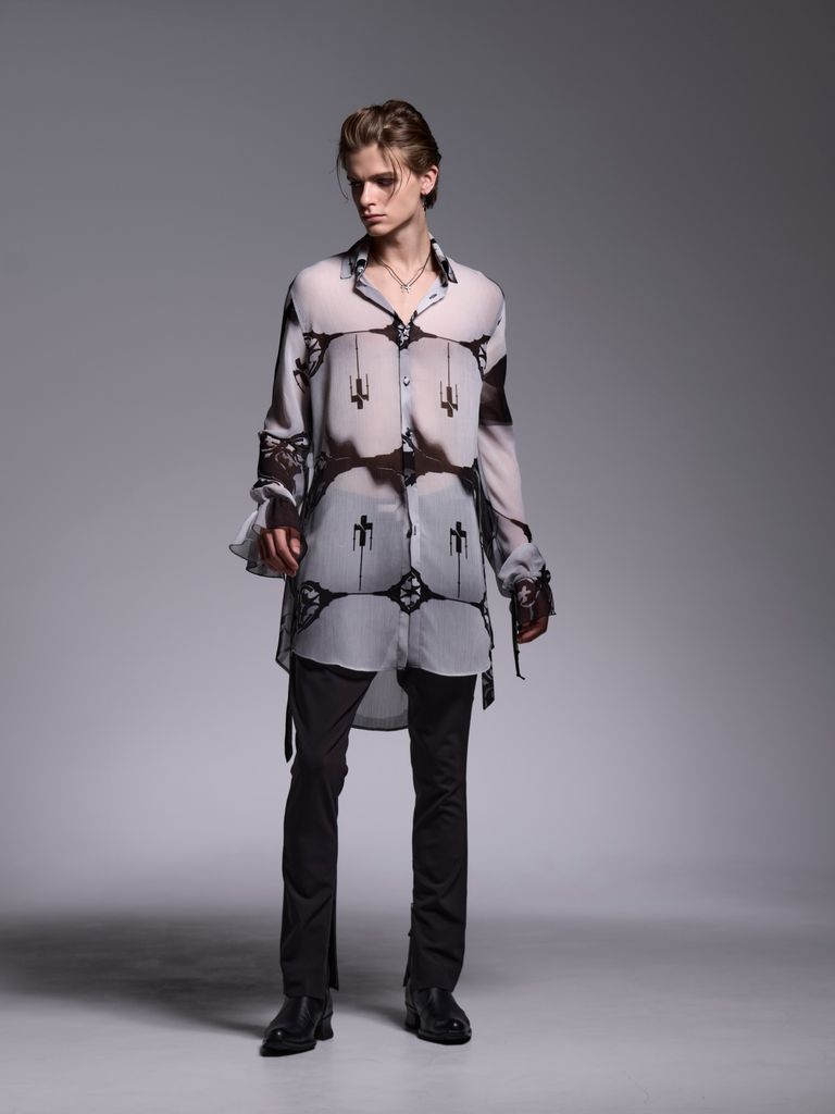 【予約品 1月4日(日) 締切】Gather Sleeve Shirt / ギャザースリーブシャツ / ブラック&グレー