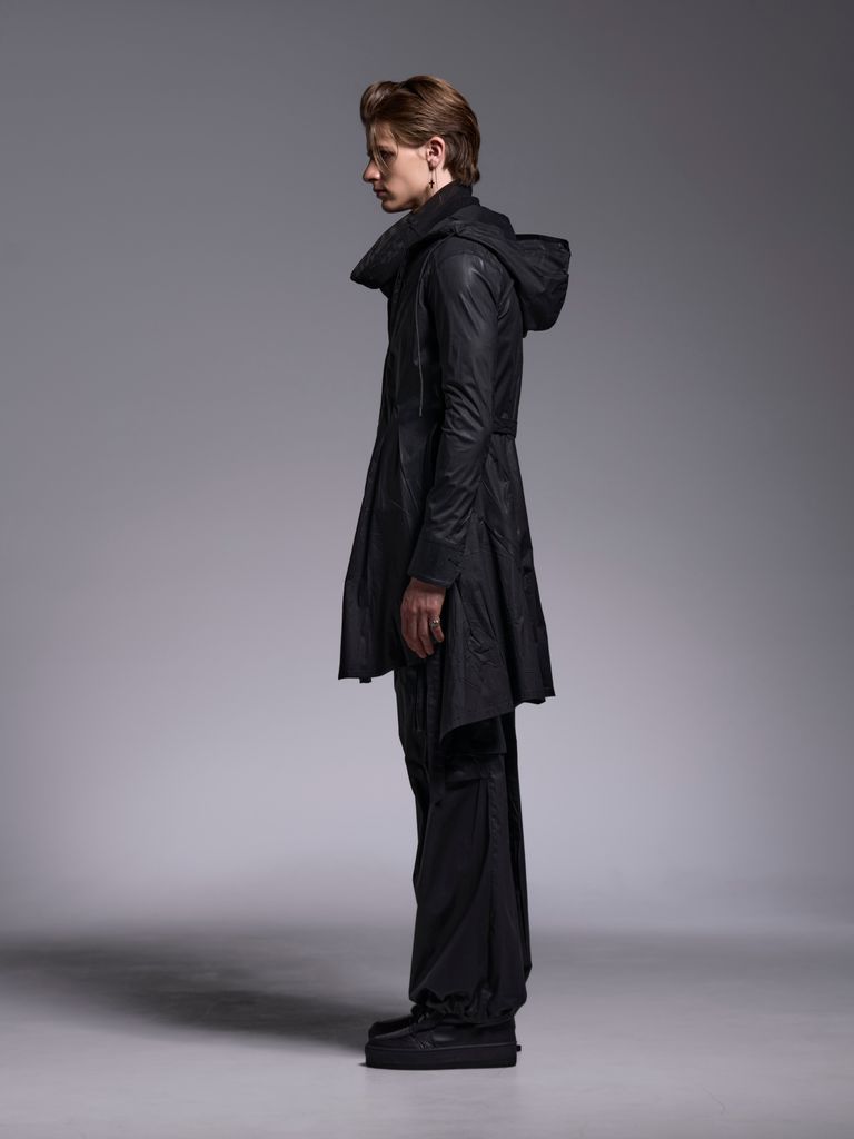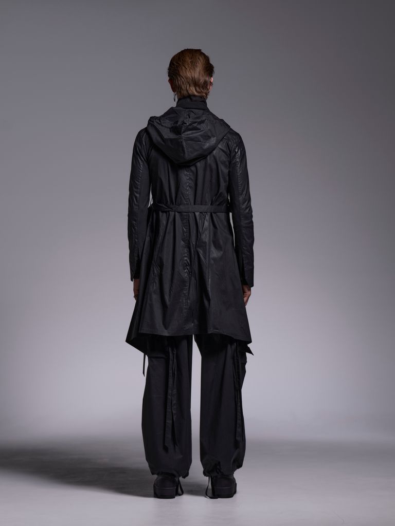 【予約品 1月4日(日) 締切】Flare Hoodie Coat / フレアフーディーコート / ブラックコーティング