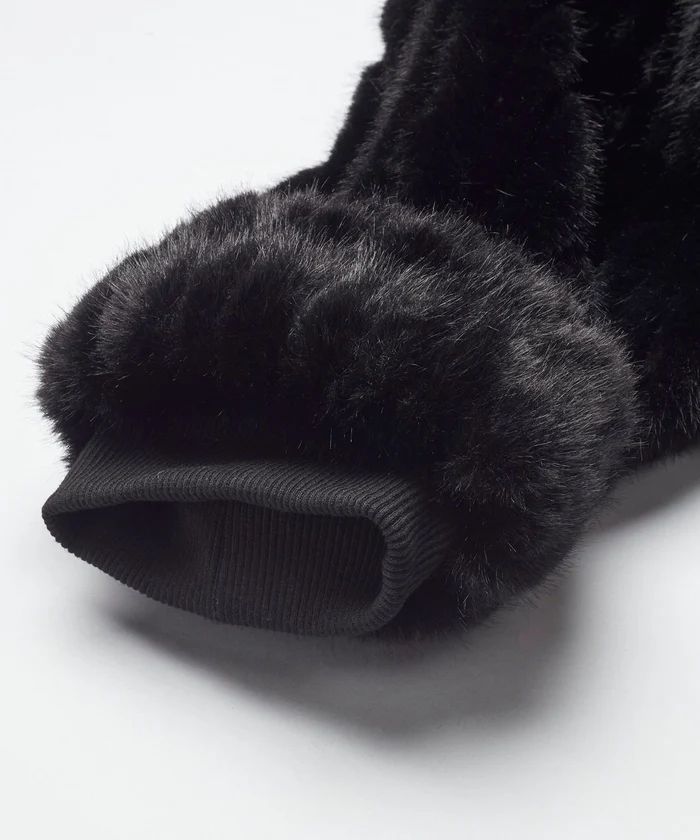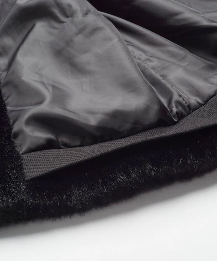 滑らかな毛並みのフェイクファー素材を使用し、陰影やリアリティのある質感で上品さを演出するBIGフードブルゾン。