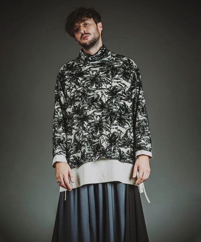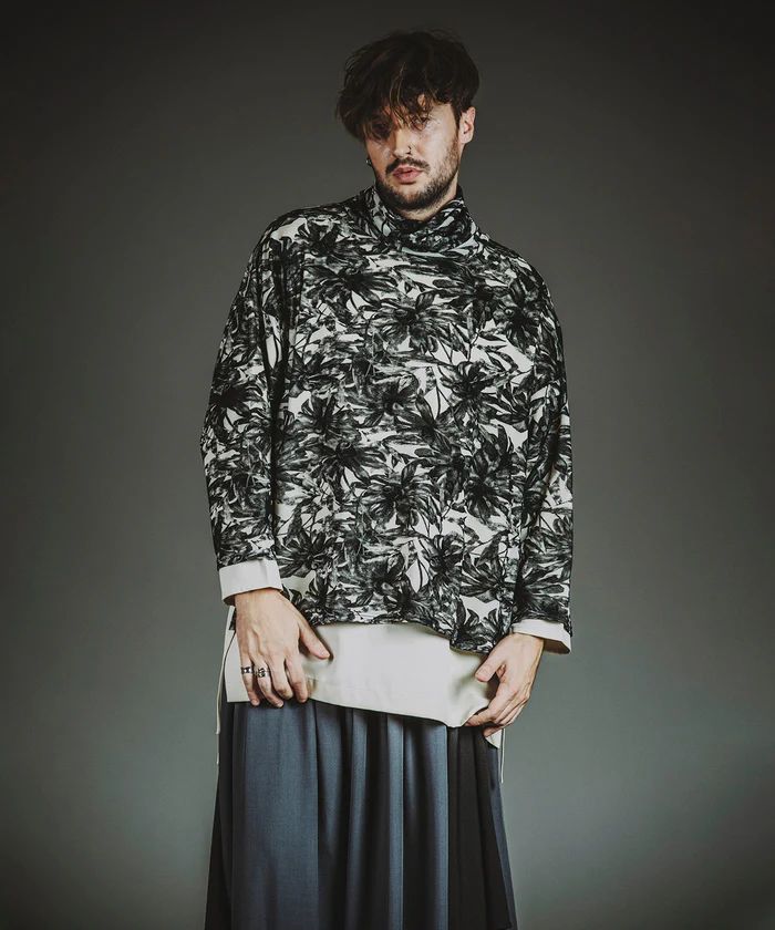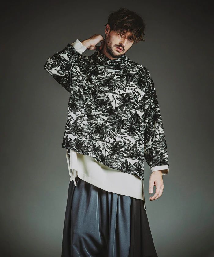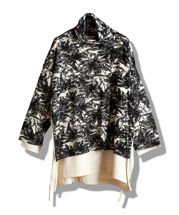 柔らかなドレープと立体感のあるボリュームネックが魅力のプルオーバーカットソーです。縦のラインを意識したやや長めの着丈で、さりげなく体型カバーしながらスタイリッシュに着こなせます。