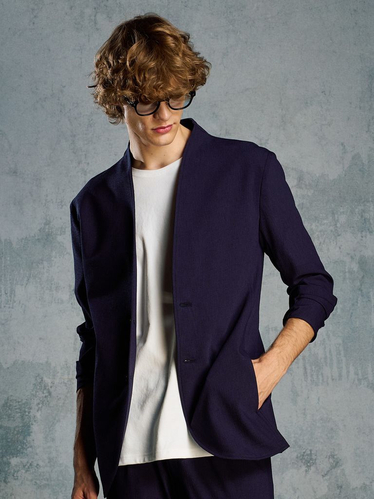 【予約品 1月25日(日) 締切】solid collar single jacket / ソリッドカラー シングル ジャケット / ネイビー