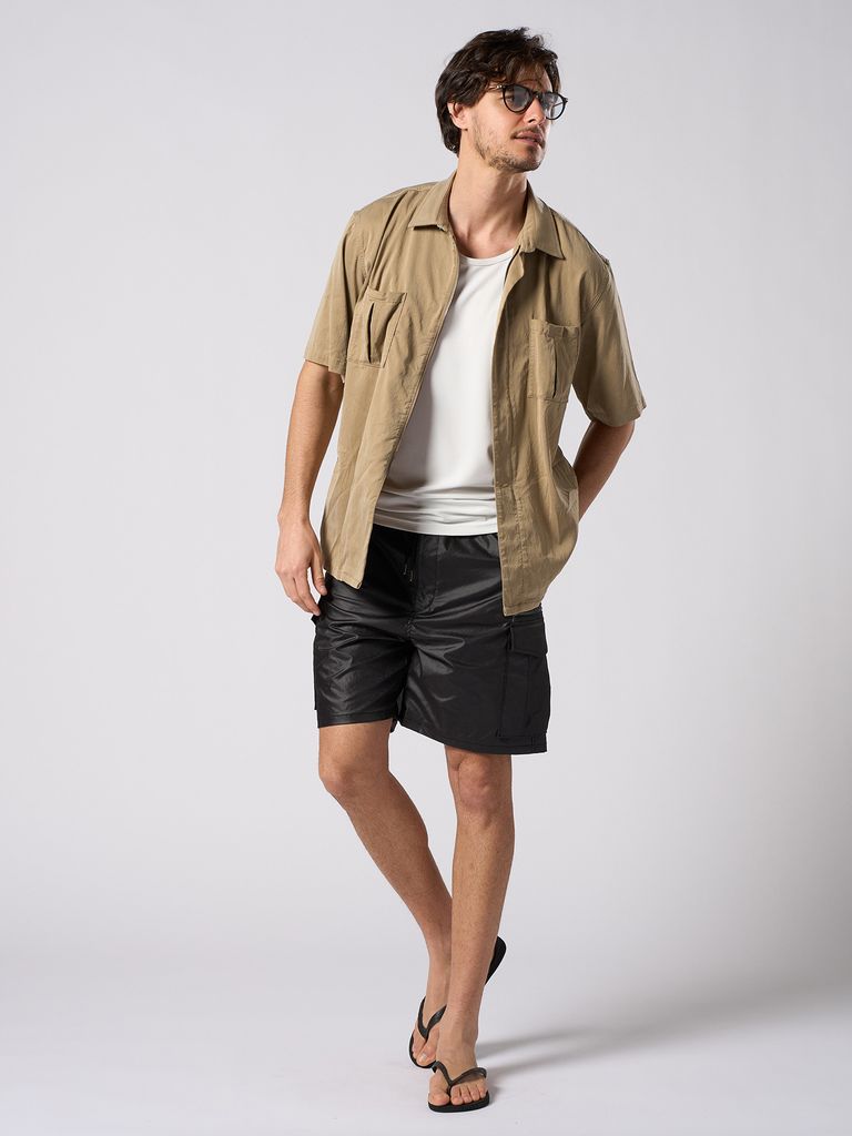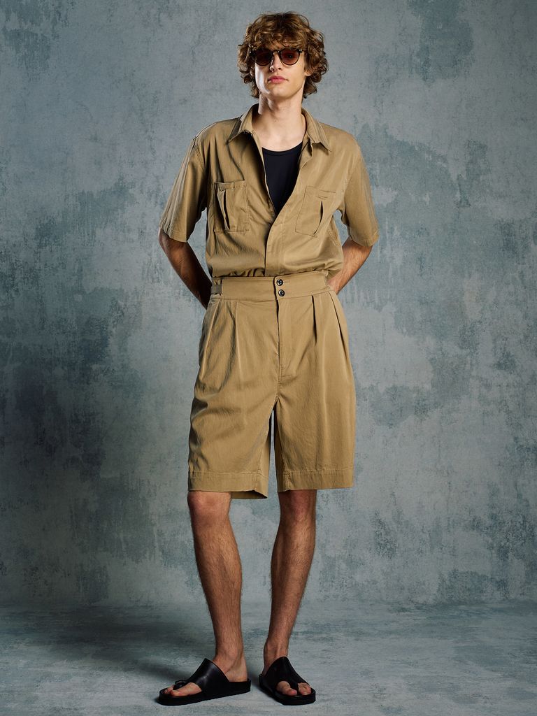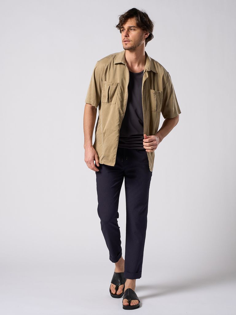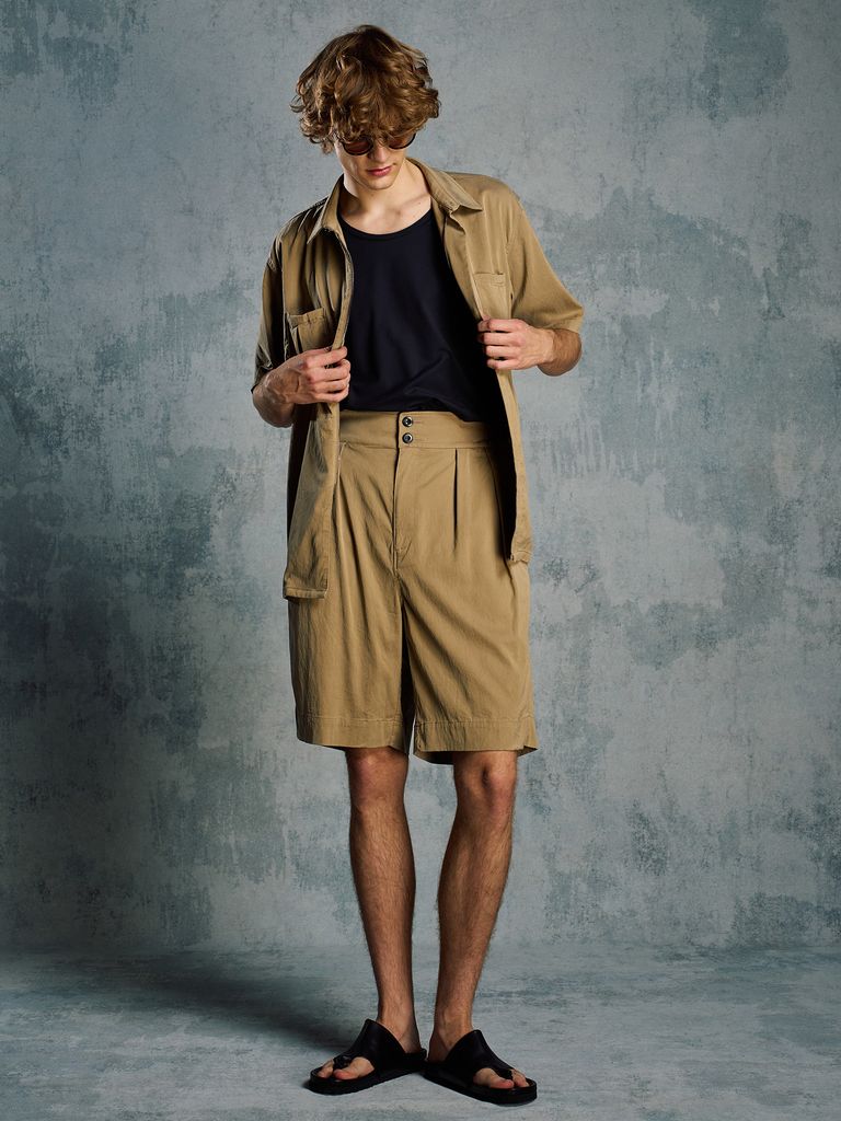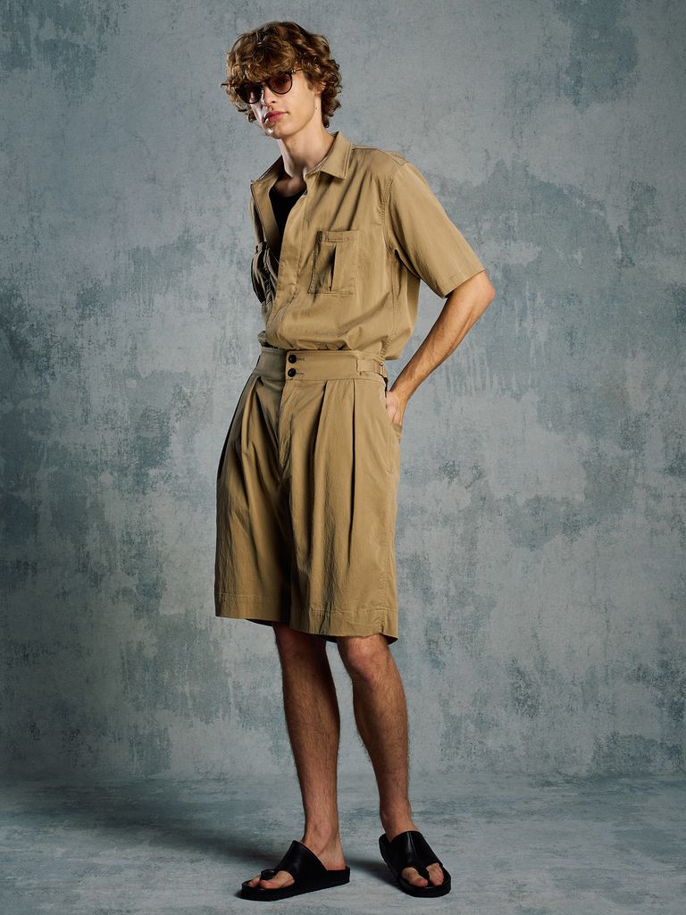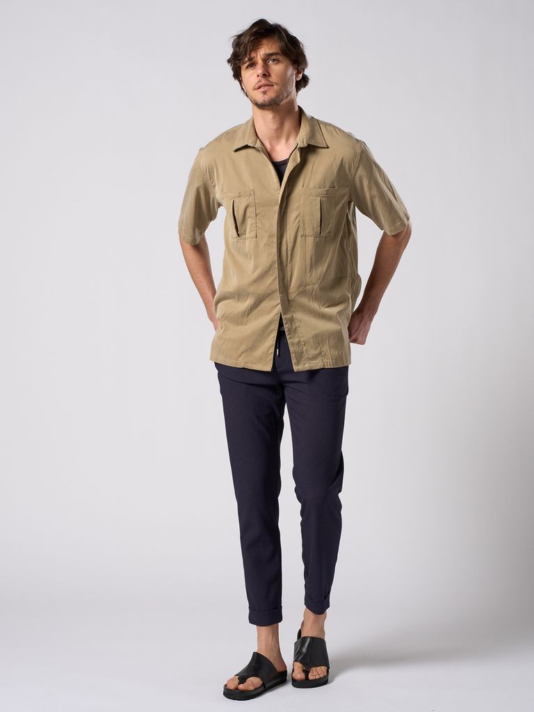 【予約品 1月25日(日) 締切】front-zip shirt H/S / フロントジップ ハーフスリーブシャツ / ダルベージュ