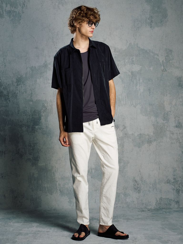 【予約品 1月25日(日) 締切】front-zip shirt H/S / フロントジップ ハーフスリーブシャツ / ブラック