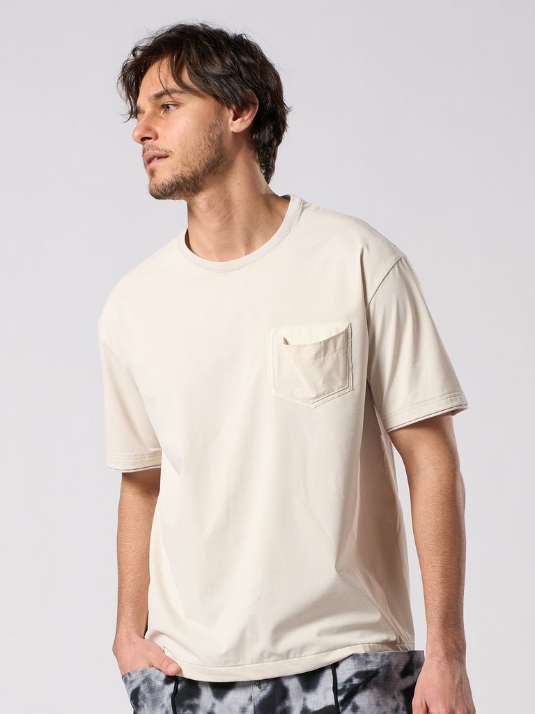 【予約品 1月25日(日) 締切】drawstring leather pocket S/S / ドローストリング レザーポケット ショートスリーブ / ライトベージュ