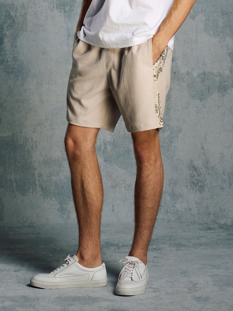 【予約品 1月25日(日) 締切】bandana print panel shorts / バンダナプリントパネル ショーツ / ベージュ