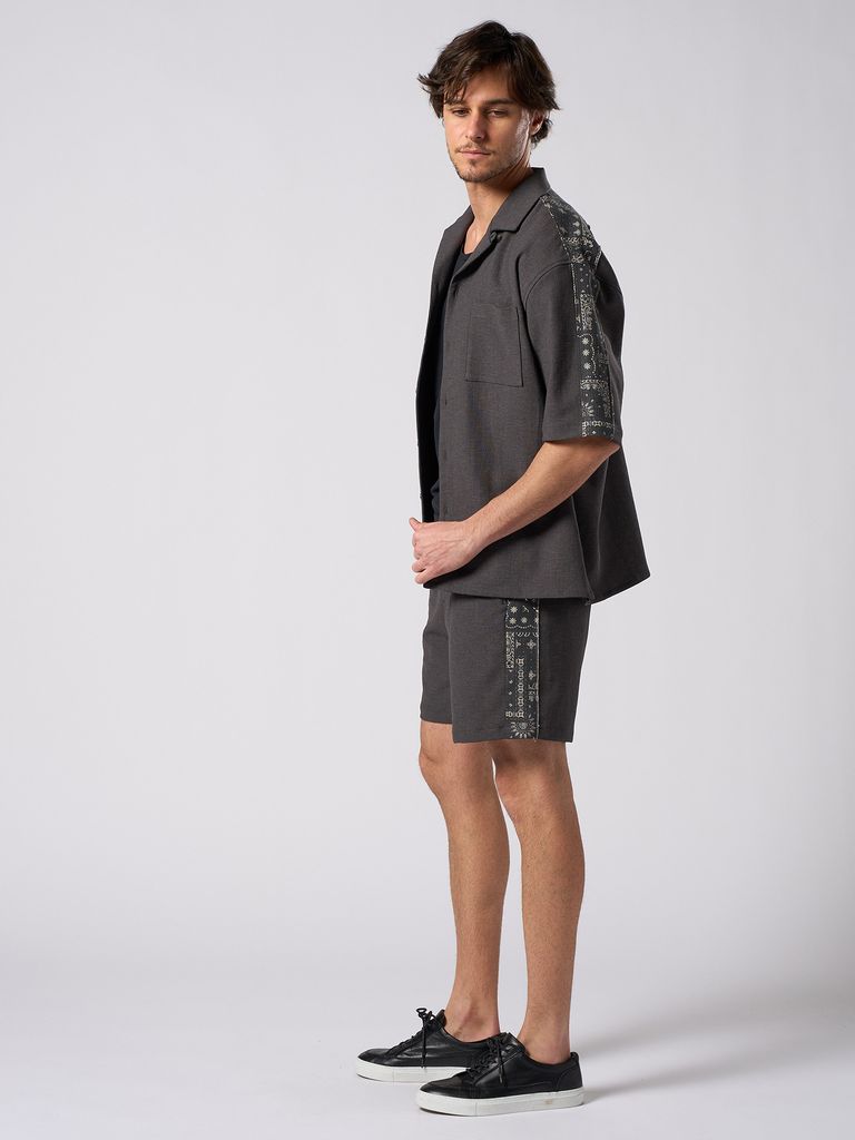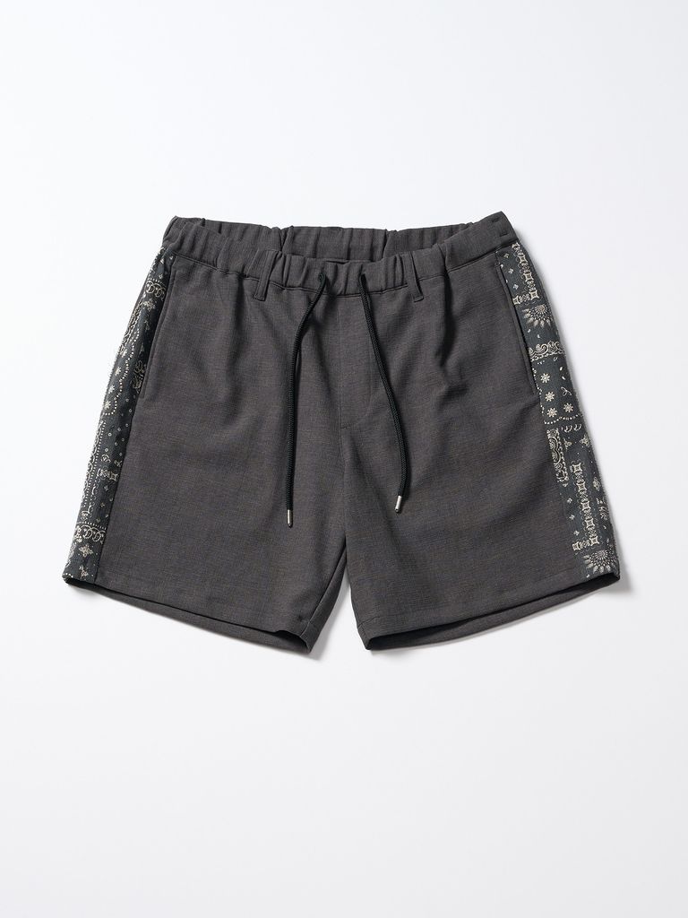 【予約品 1月25日(日) 締切】bandana print panel shorts / バンダナプリントパネル ショーツ / チャコール