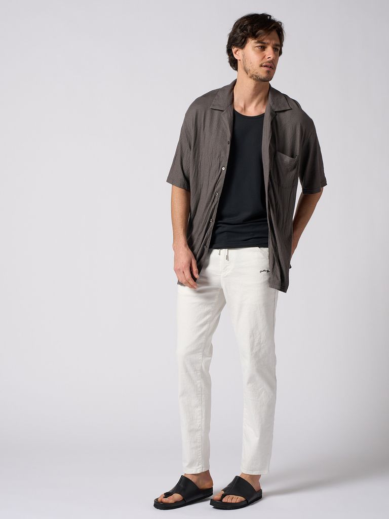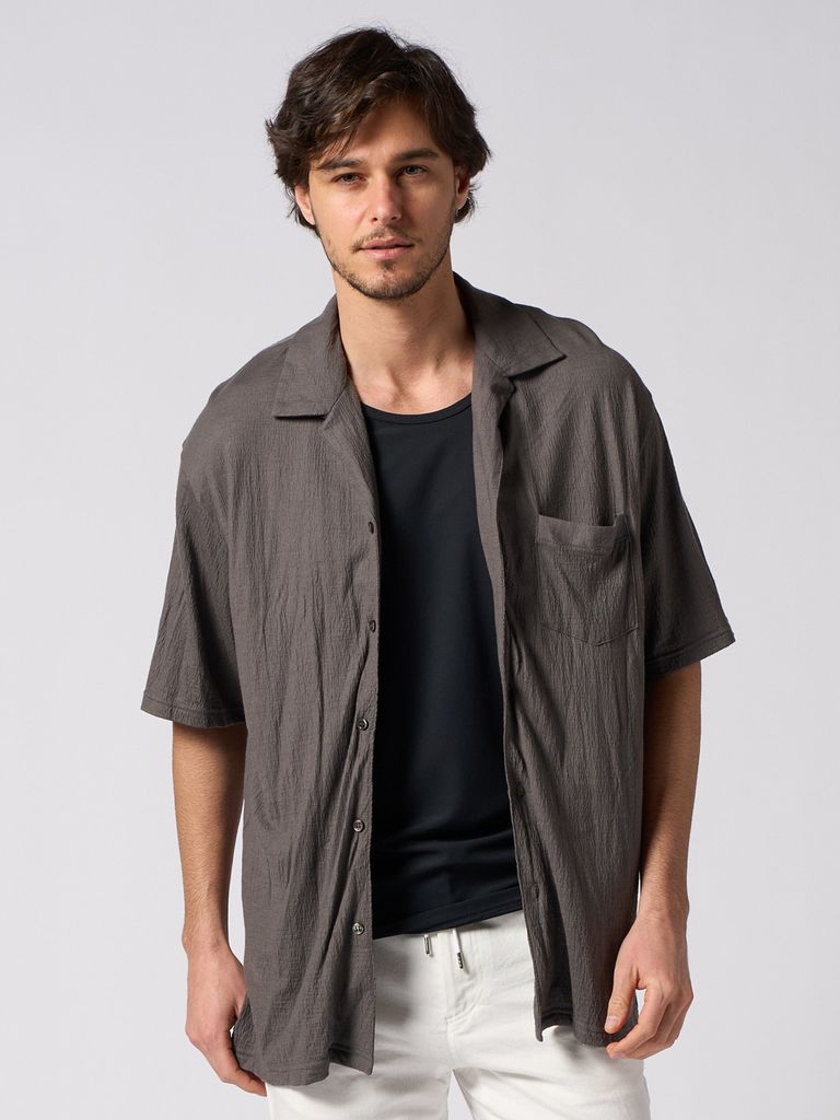 【予約品 1月25日(日) 締切】ex.comfy wool open collar shirt / サマーウール オープンカラーシャツ / スチールグレー