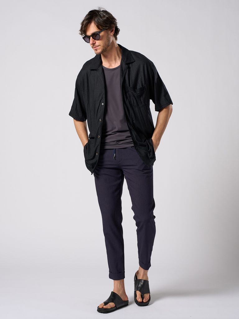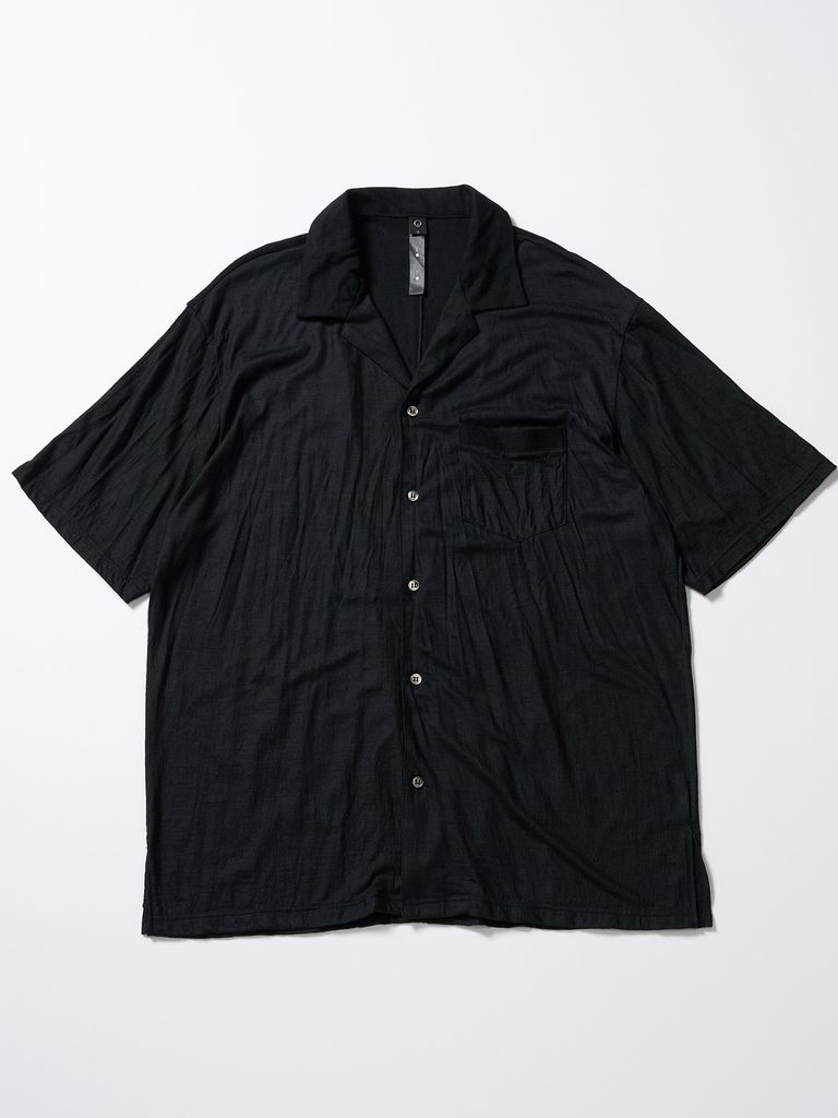 【予約品 1月25日(日) 締切】ex.comfy wool open collar shirt / サマーウール オープンカラーシャツ / ブラック
