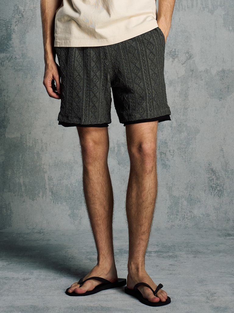 【予約品 1月25日(日) 締切】jacquard summer knit shorts / ジャガード サマーニット ショーツ / ブラック