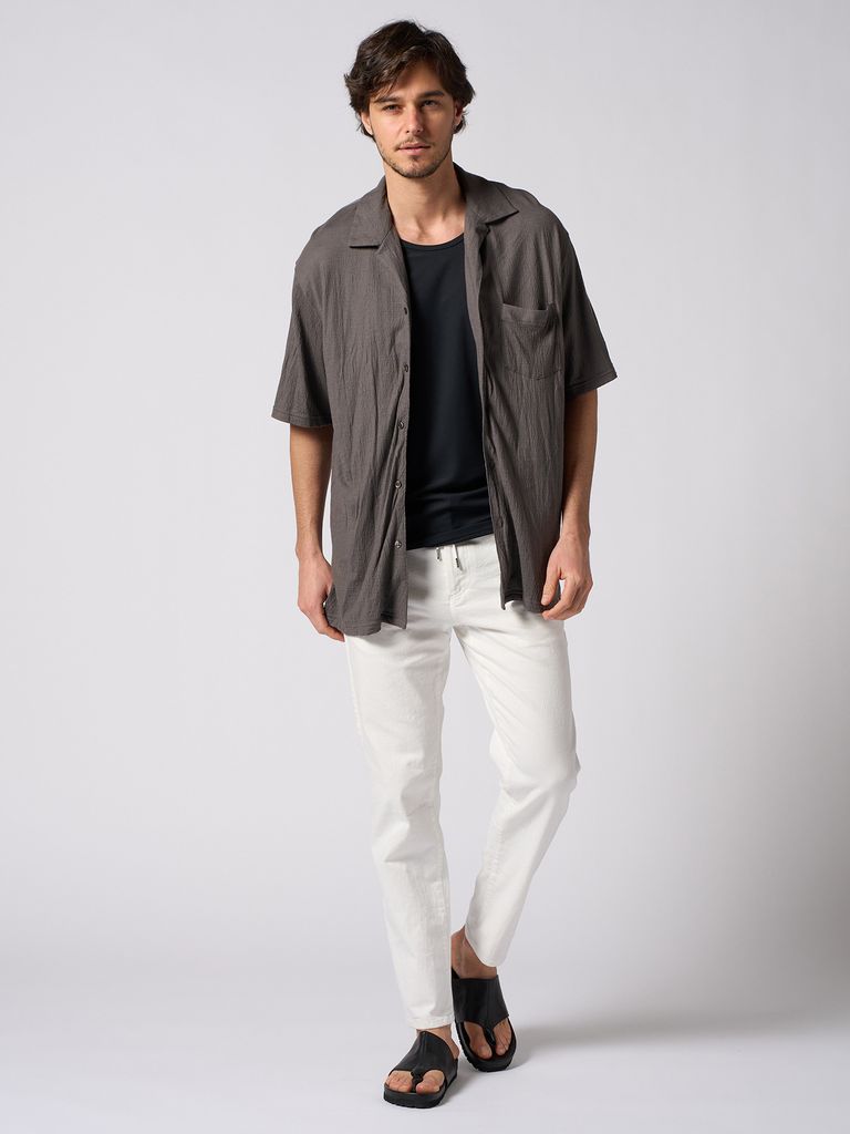 春夏のインナーとして重宝するタンクトップ。各寸法を調整することで、1枚でも着られるよう、汎用性の高いデザインを構築。