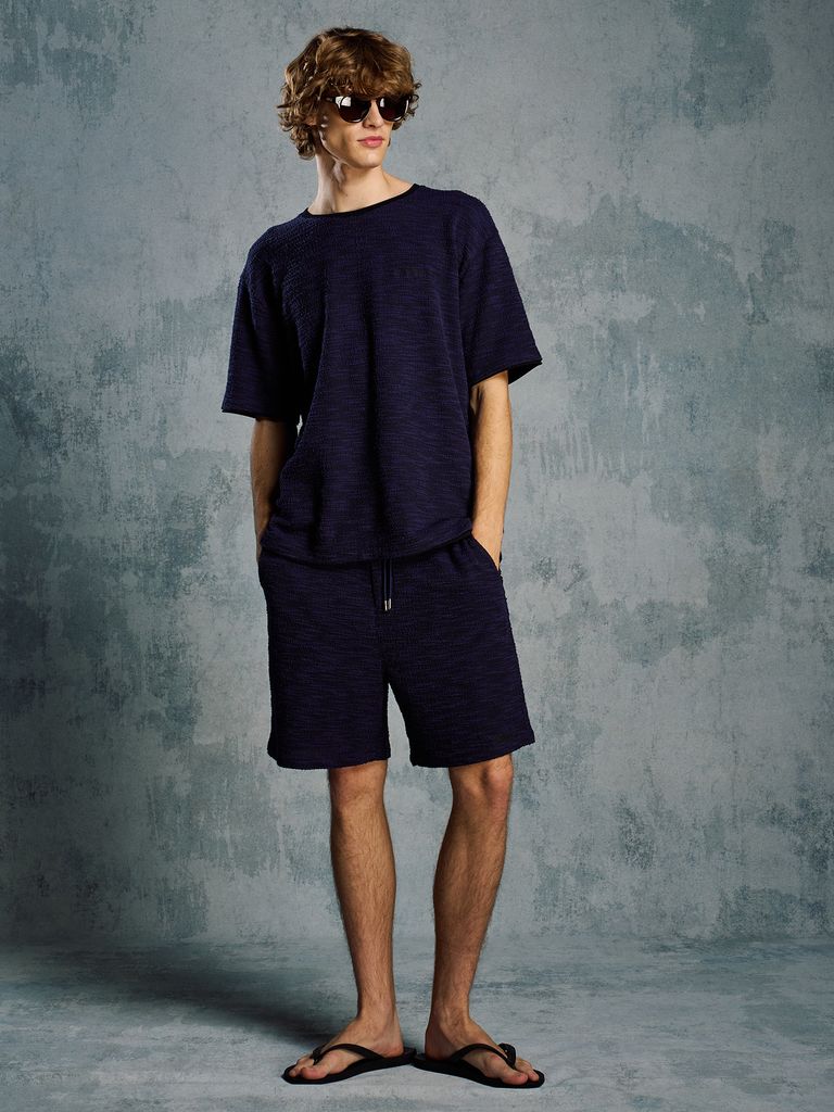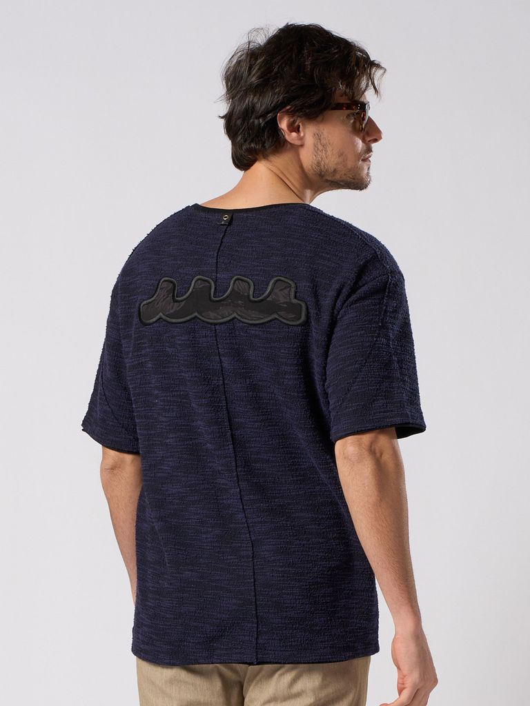 【予約品 1月25日(日) 締切】muta × wjk collection:knit jacquard relax S/S / ニットジャガード リラックスショートスリーブ / ネイビー