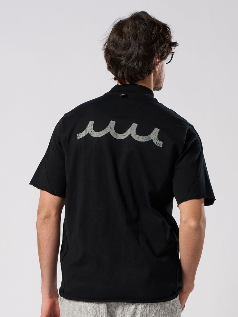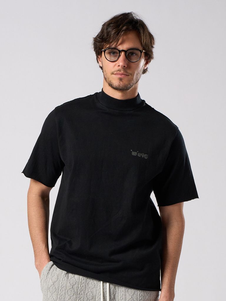 【予約品 1月25日(日) 締切】muta × wjk collection:cut-off mock S/S (printed) / カットオフ モックネック ショートスリーブ / ディープブラック