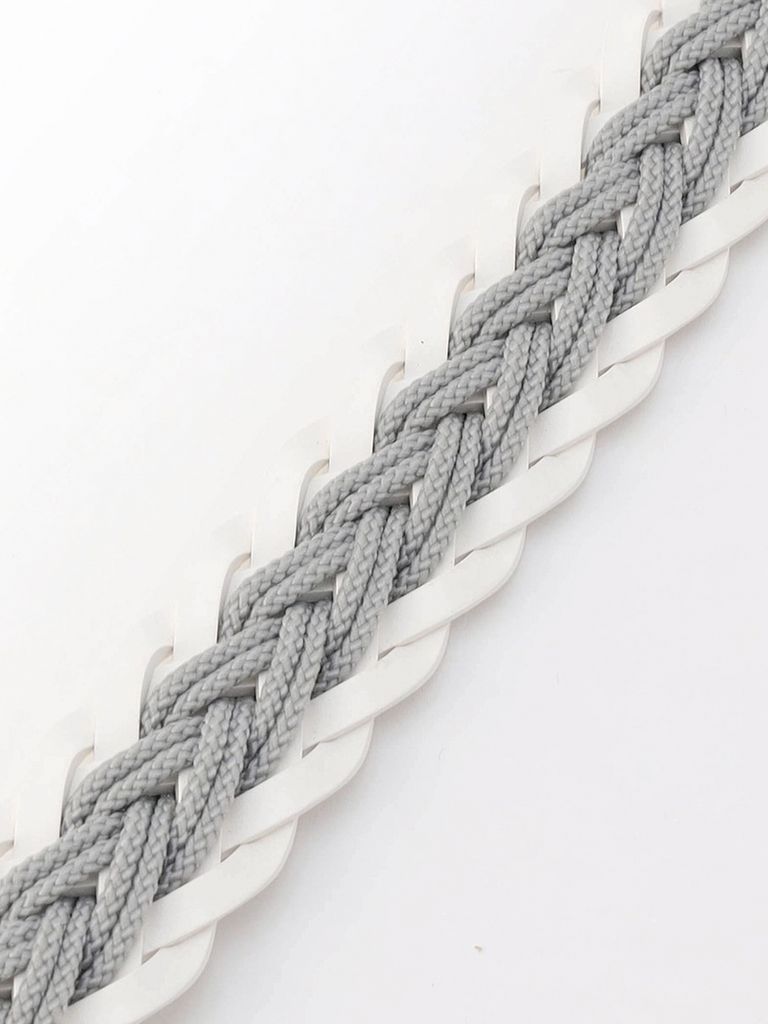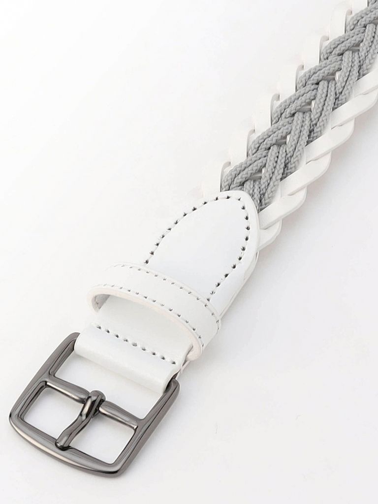 テープとコードを立体的に編み込んだメッシュベルト。繊細なメッシュ帯が上品かつ洗練された印象を引き立てます。バックルにもデザイン性の高い金具を使用して着用時のアクセントにしています。ベーシックなカラー展開で、シーンを問わずご着用いただけます。