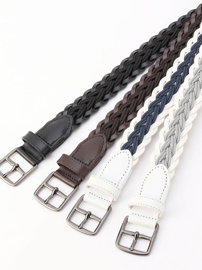 カジュアルからドレススタイルまで合わせやすいやや細めの設定にしています。サイズ調節不要で、編み込み部分のどこでも留めることができる利便性が特長です。