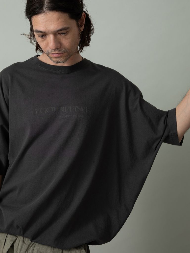 【予約品 2月1日(日) 締切】KITE TEE frocky / フロッキープリント ニットT / チャコール