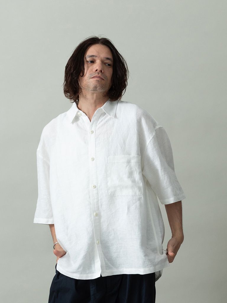 【予約品 2月1日(日) 締切】GATHERLINEN SHIRTS S/S / リネン 半袖シャツ / ホワイト