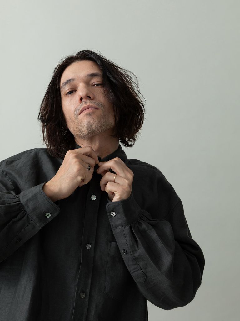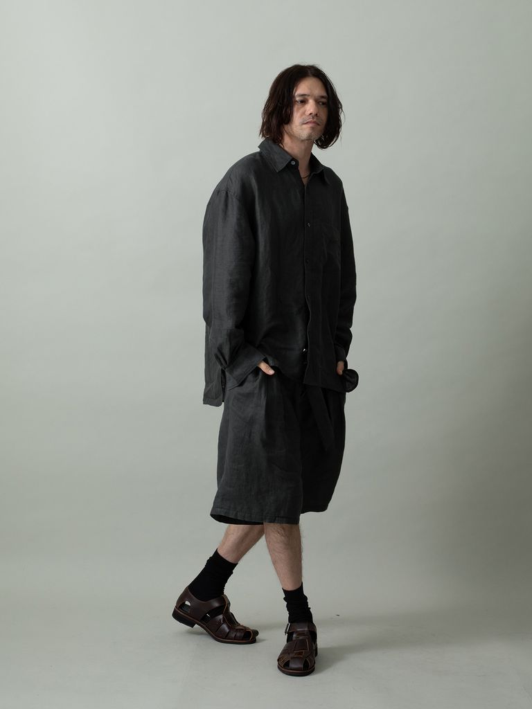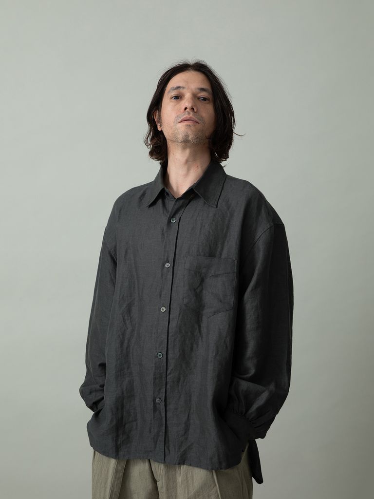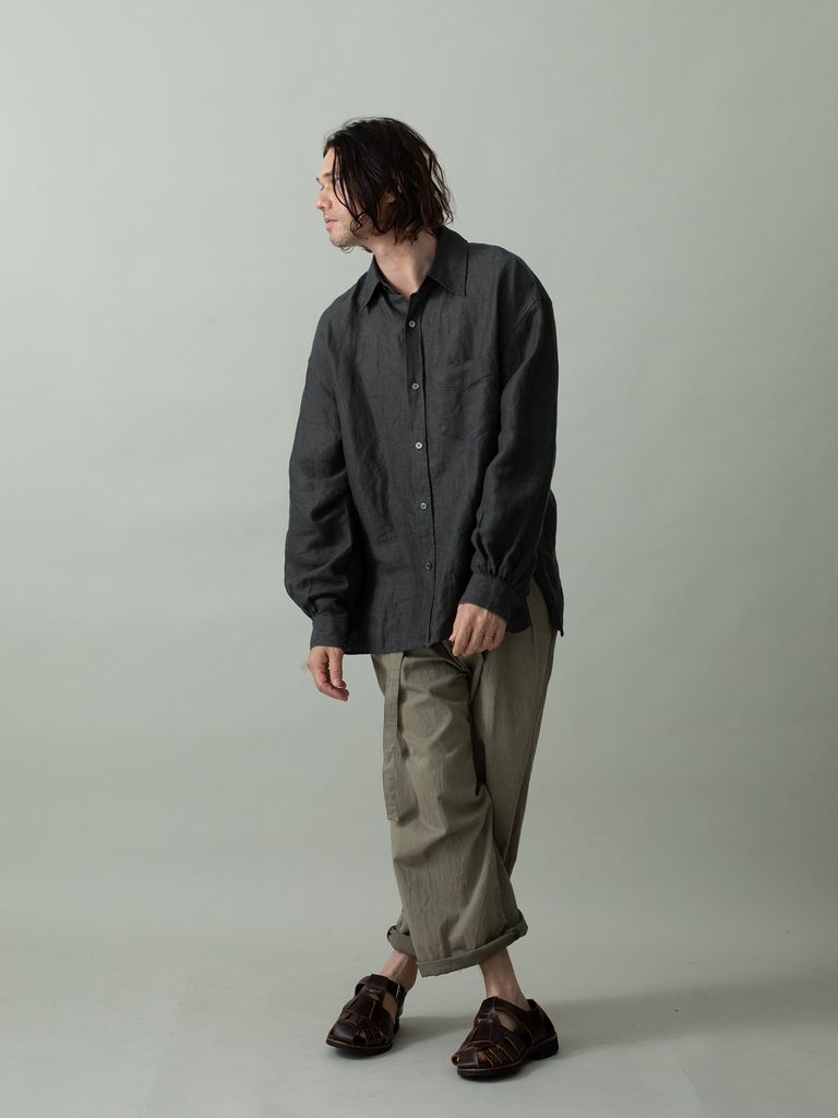 【予約品 2月1日(日) 締切】GATHERLINEN SHIRTS / リネンシャツ / チャコール