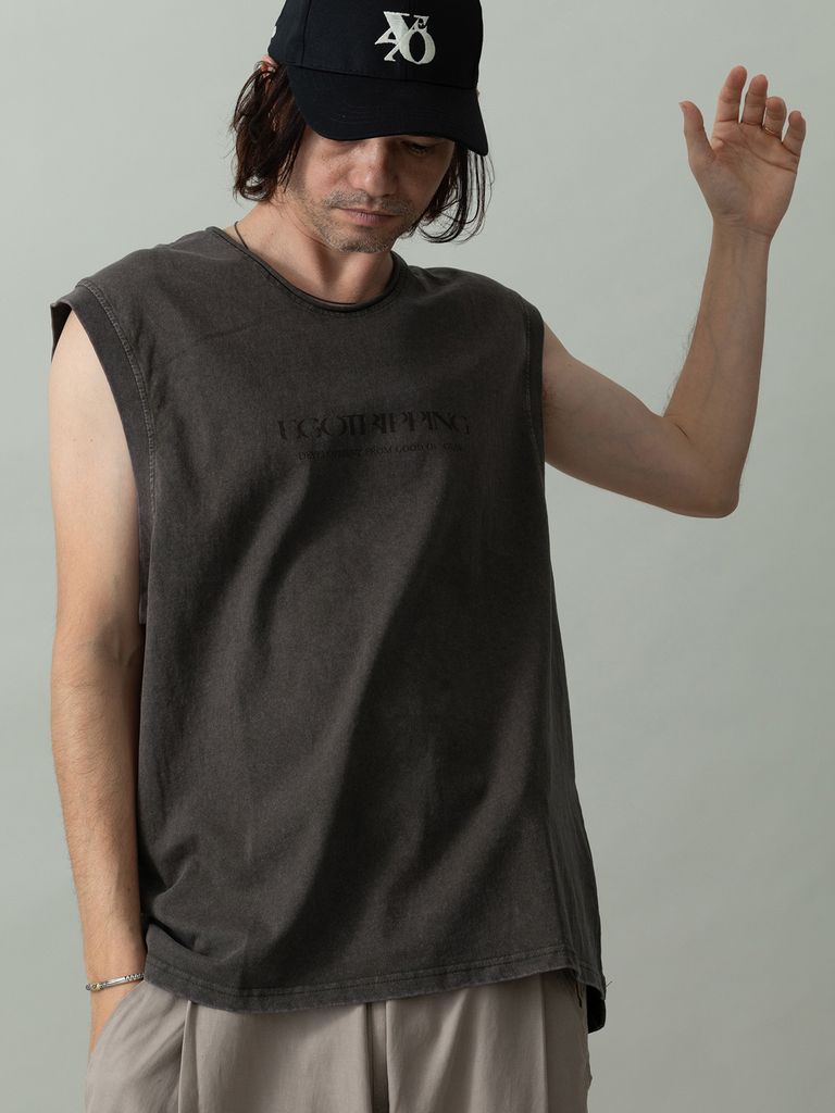 【予約品 2月1日(日) 締切】CREWNOT bleed / ロゴプリント ノースリーブ / ダークブラウン