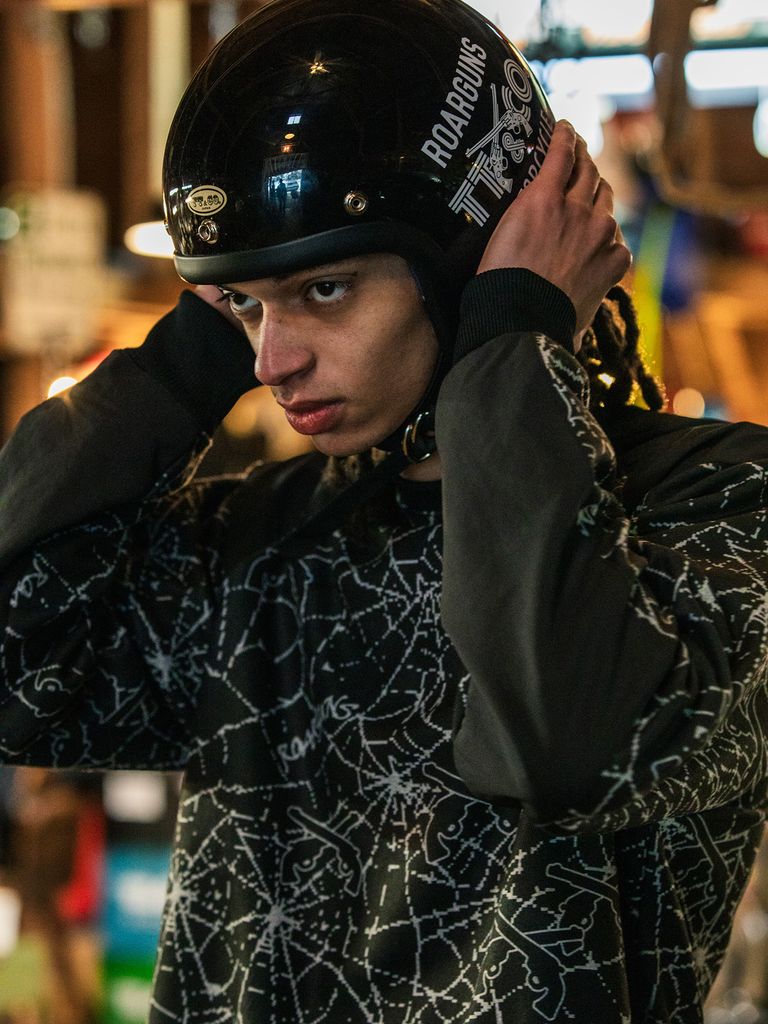 今シーズンの象徴的存在ともいえるでコラボギア。デザイナー自身が愛用するヘルメット