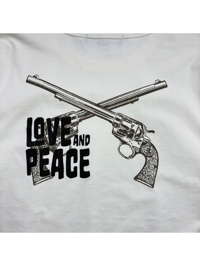 【予約品 3月9日(月) 18:00 締切】ORG/CO S/TEE LAP/GUN / クロスガン LOVE and PEACE オーガニックコットン Tシャツ / ホワイト