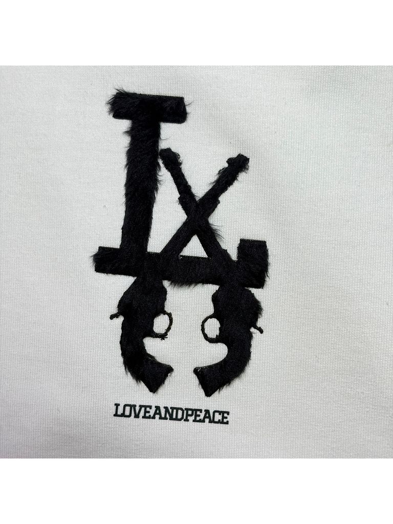 【予約品 3月9日(月) 18:00 締切】LA FAR PRINT S/S T / LA ファーフロッキープリント オーガニックコットン Tシャツ / ホワイト