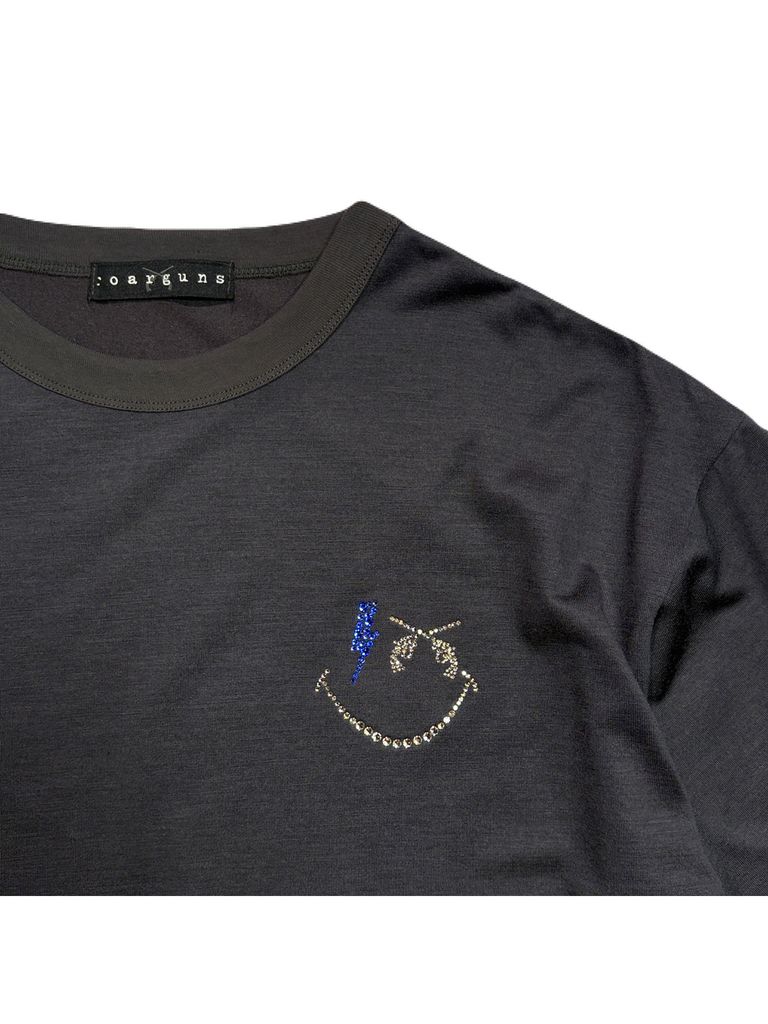 【予約品 3月9日(月) 18:00 締切】WO/JER S/TEE SMI/SWA / ウールジャージ スワロフスキー スマイル Tシャツ / グレー