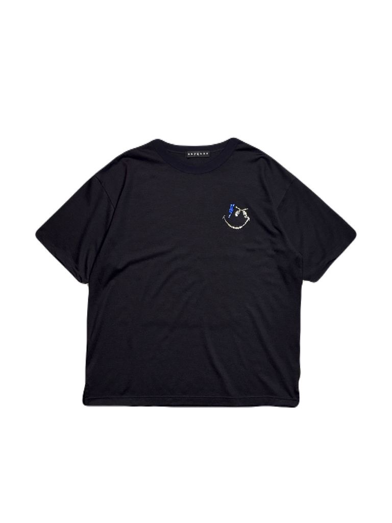 【予約品 3月9日(月) 18:00 締切】WO/JER S/TEE SMI/SWA / ウールジャージ スワロフスキー スマイル Tシャツ / ブラック