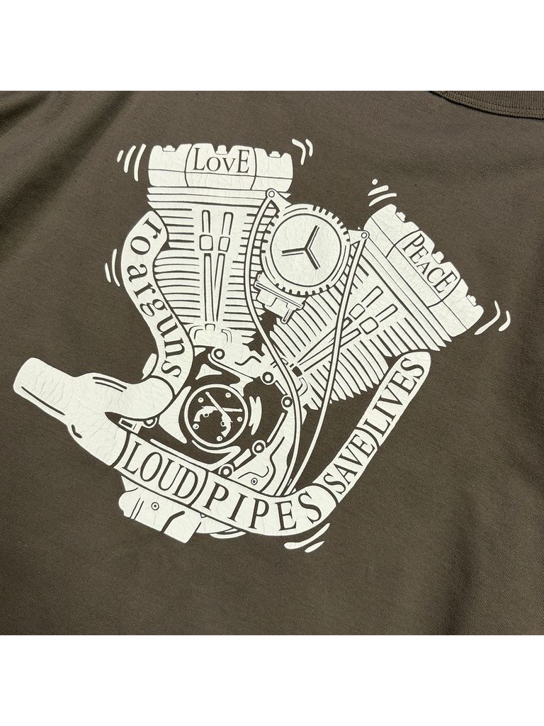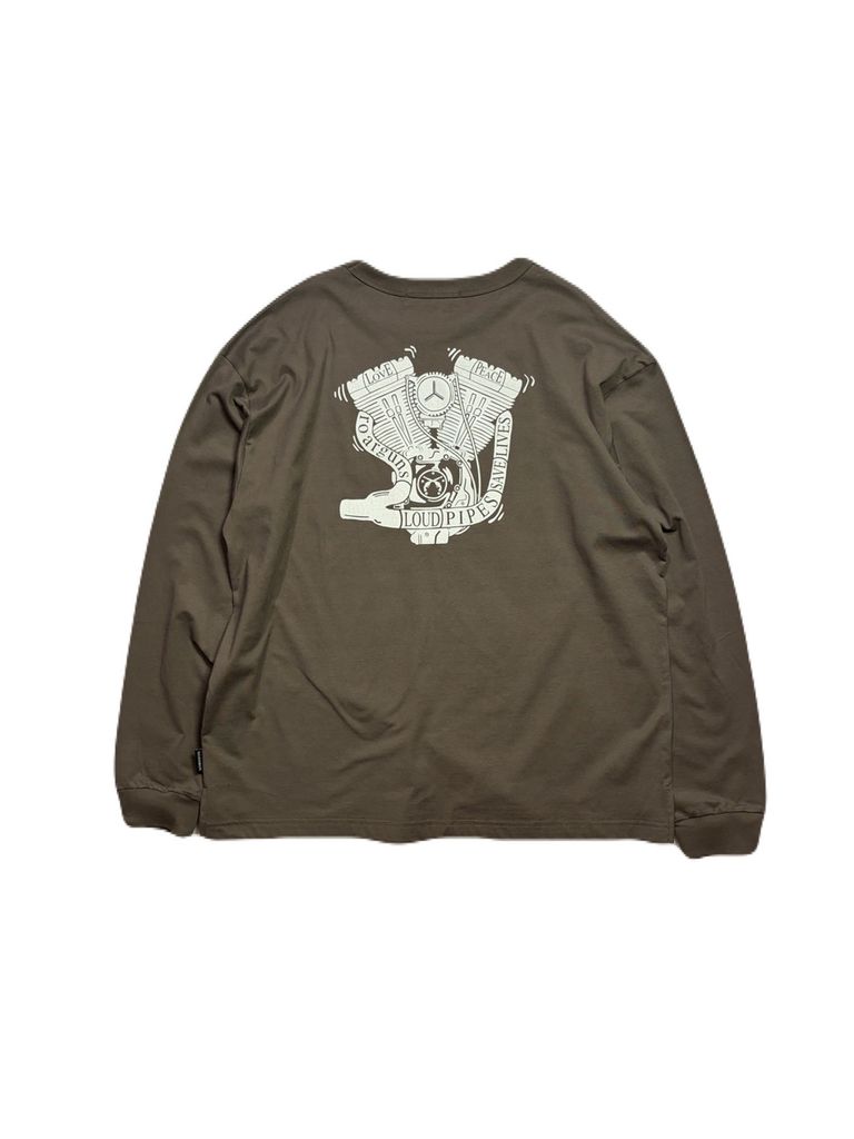 【予約品 3月9日(月) 18:00 締切】ORG/CO L/TEE ENGINE / エンジンプリント オーガニックコットン ロンT / カーキ
