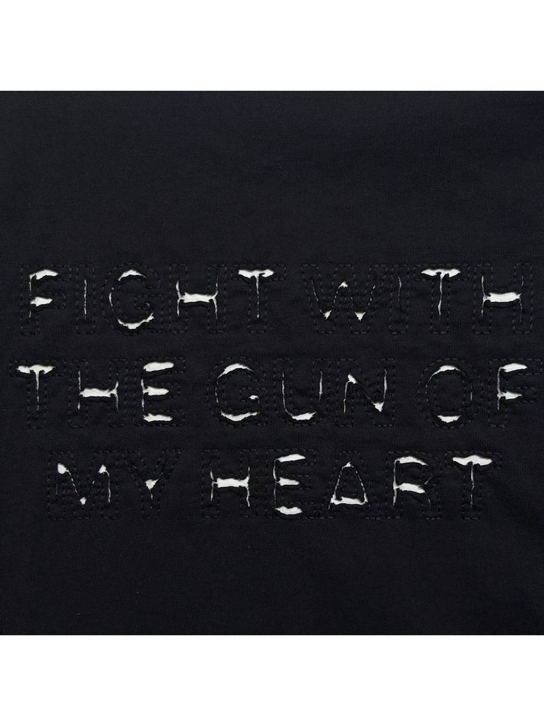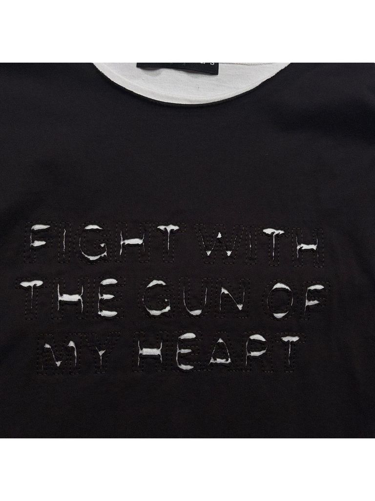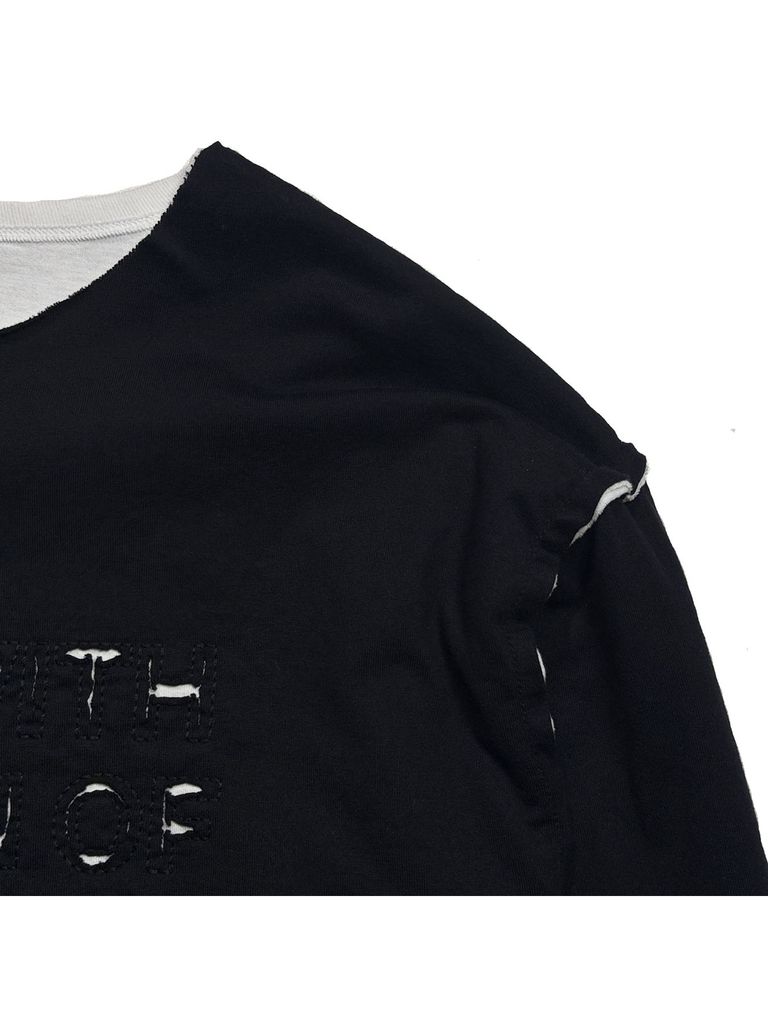 【予約品 3月9日(月) 18:00 締切】EMB CUT W FACE T / メッセージ刺繍 カット Wフェイス ロンT / ブラック×ホワイト