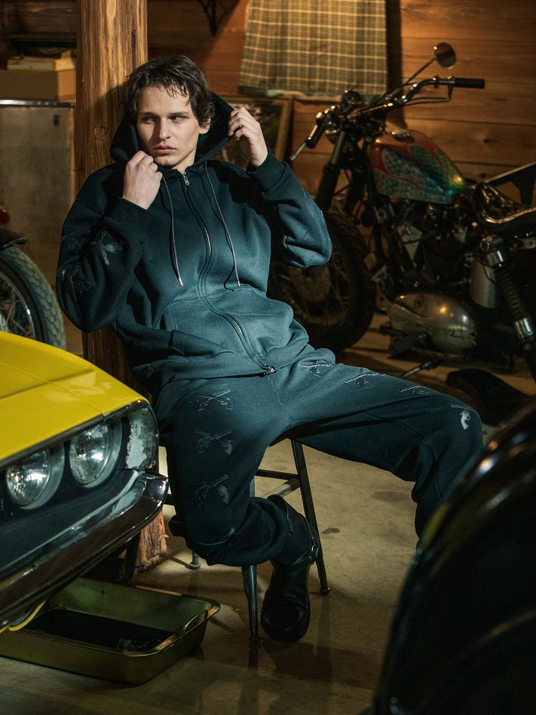 【予約品 3月9日(月) 18:00 締切】LEATHER PATCH PANTS / レザーパッチ スウェットパンツ / ブラック