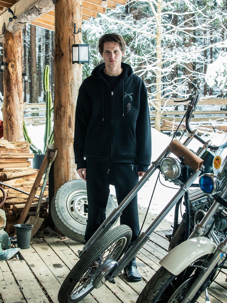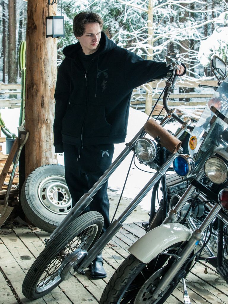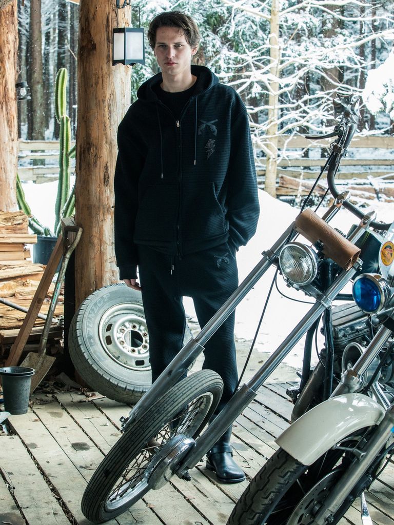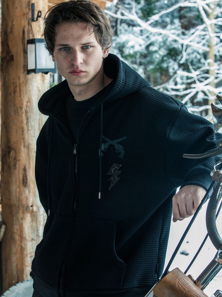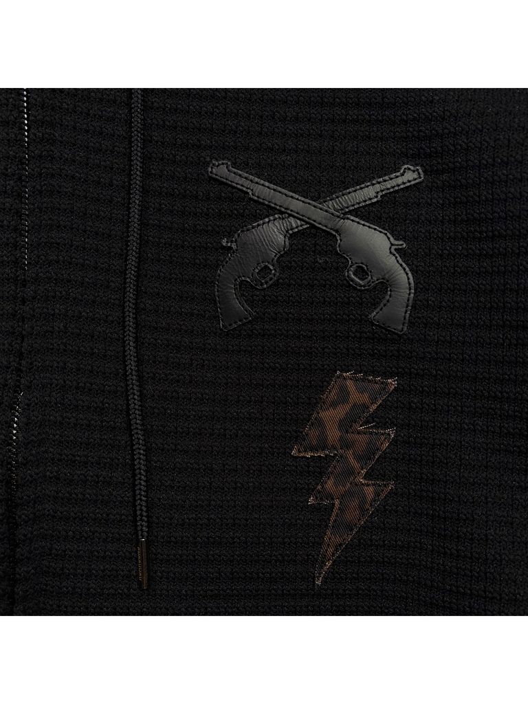 【予約品 3月9日(月) 18:00 締切】PATCH WAFFLE HOODIE / レザーパッチ ビッグワッフル ジップフーディ / ブラック
