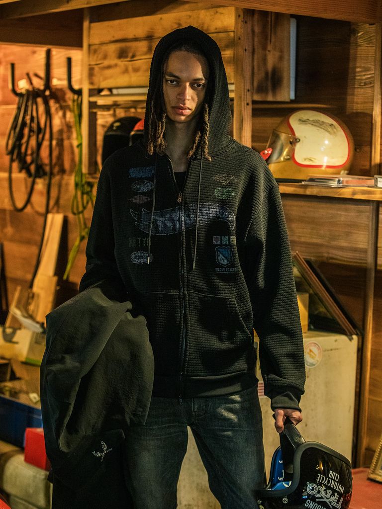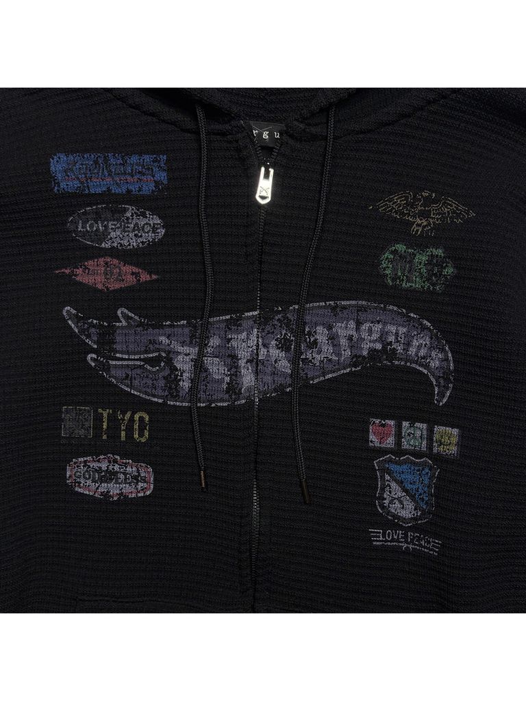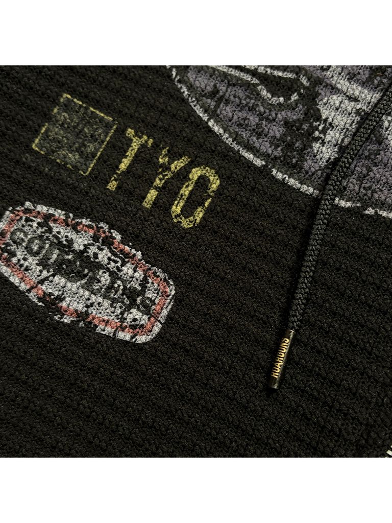 【予約品 3月9日(月) 18:00 締切】PRINT WAFFLE HOODIE / プリント ビッグワッフル ジップフーディ / ブラック