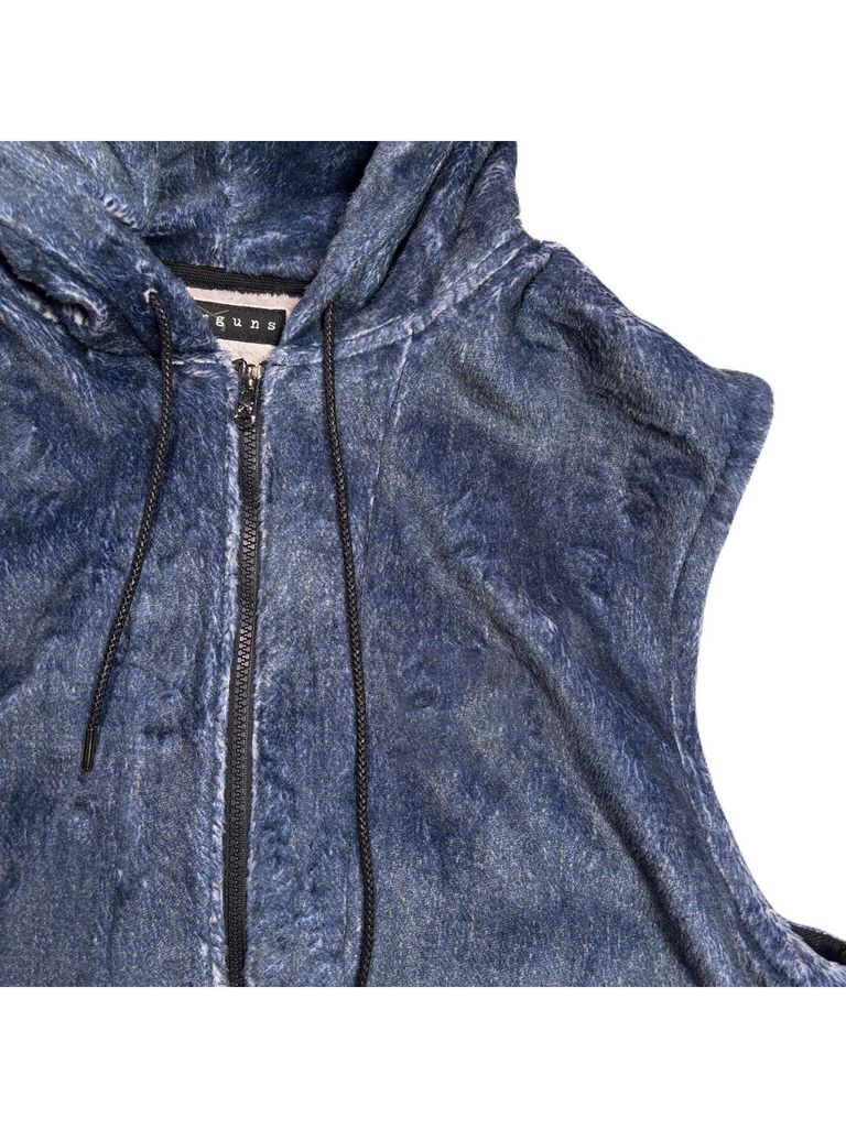 【予約品 3月9日(月) 18:00 締切】FLEECE DENIM VEST / デニムプリント フリース ベスト / ブルー
