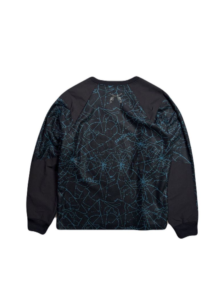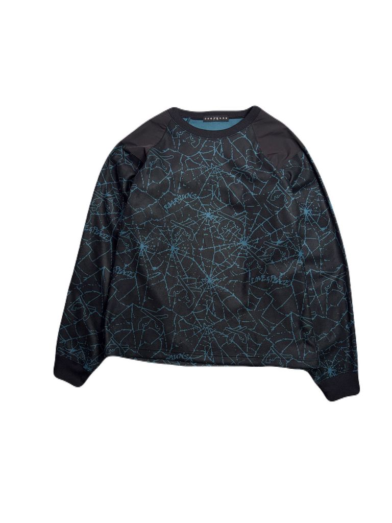 【予約品 3月9日(月) 18:00 締切】SPIDER PRINT T CRY / クリスタルクロスガン スパイダープリント フリース ロンT / ブラック×ブルー