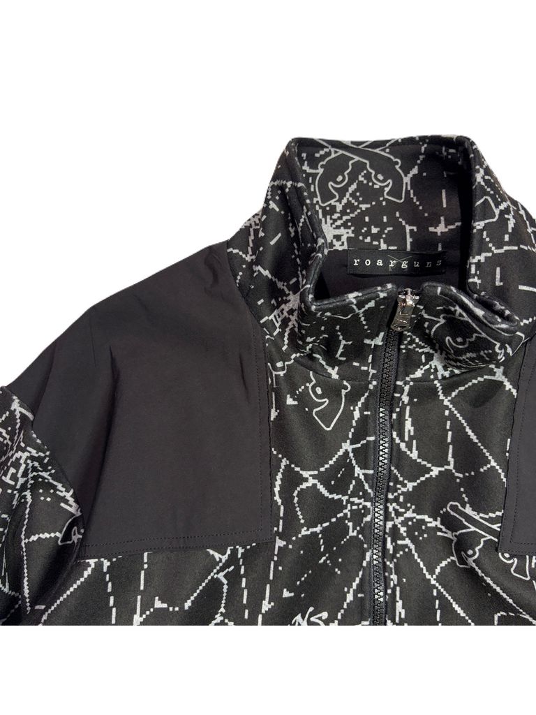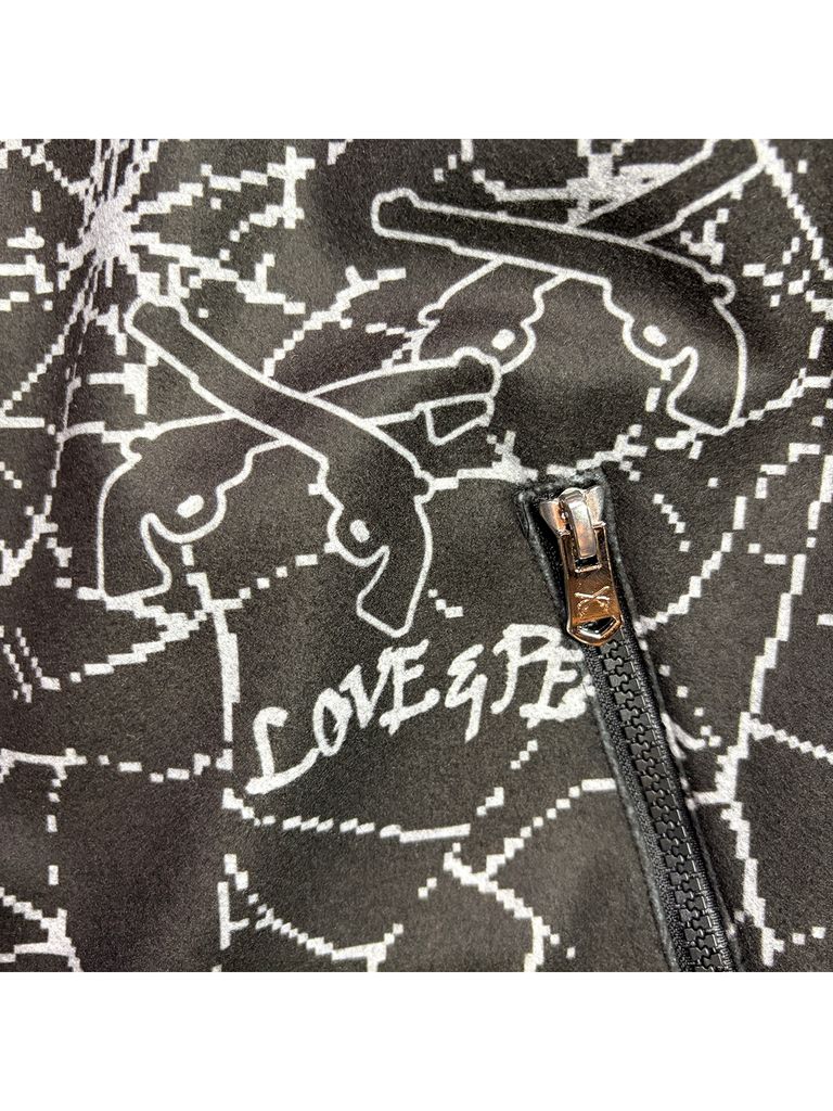 【予約品 3月9日(月) 18:00 締切】SPIDER PRINT JKT CRY / クリスタルクロスガン スパイダープリント フリース ジャケット / ブラック×グレー
